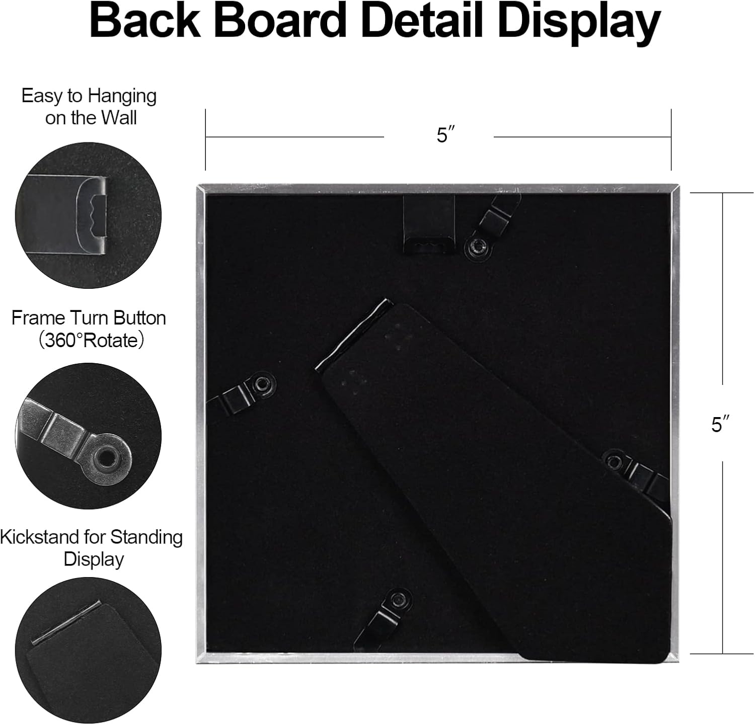 5x5 Picture Frame Silver Brushed Modern Simple Thin Aluminum Metal Photo Frame with HD Real Glass, Display for Tabletop and Wall Collage. (2 Pack)