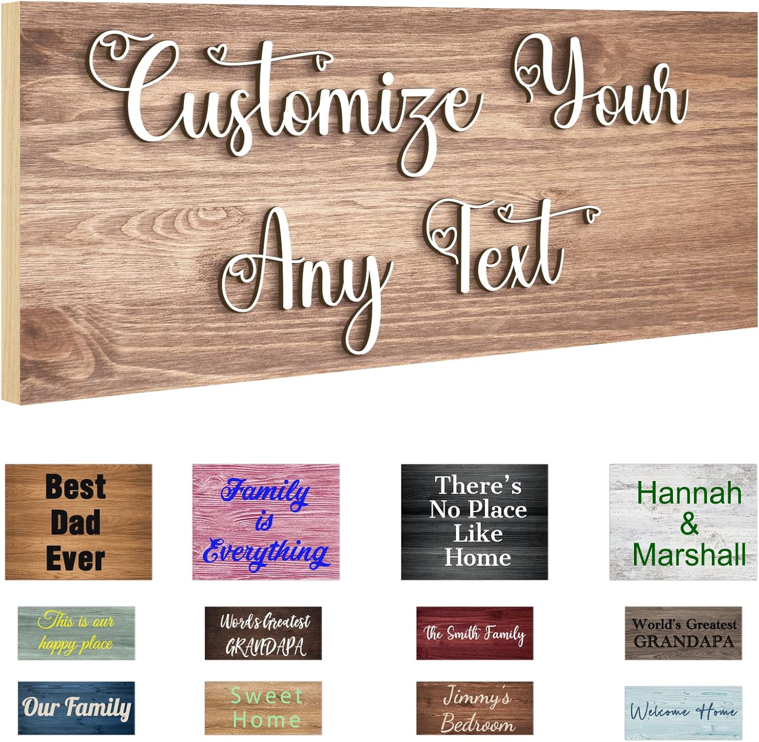 - ★Customizable signs: We offer 12 wood background colors, a variety of text fonts and colors, and design styles to choose from, allowing you to leave any text on it, and you can also choose from the production processes we offer one for 3D text and one for printed text.