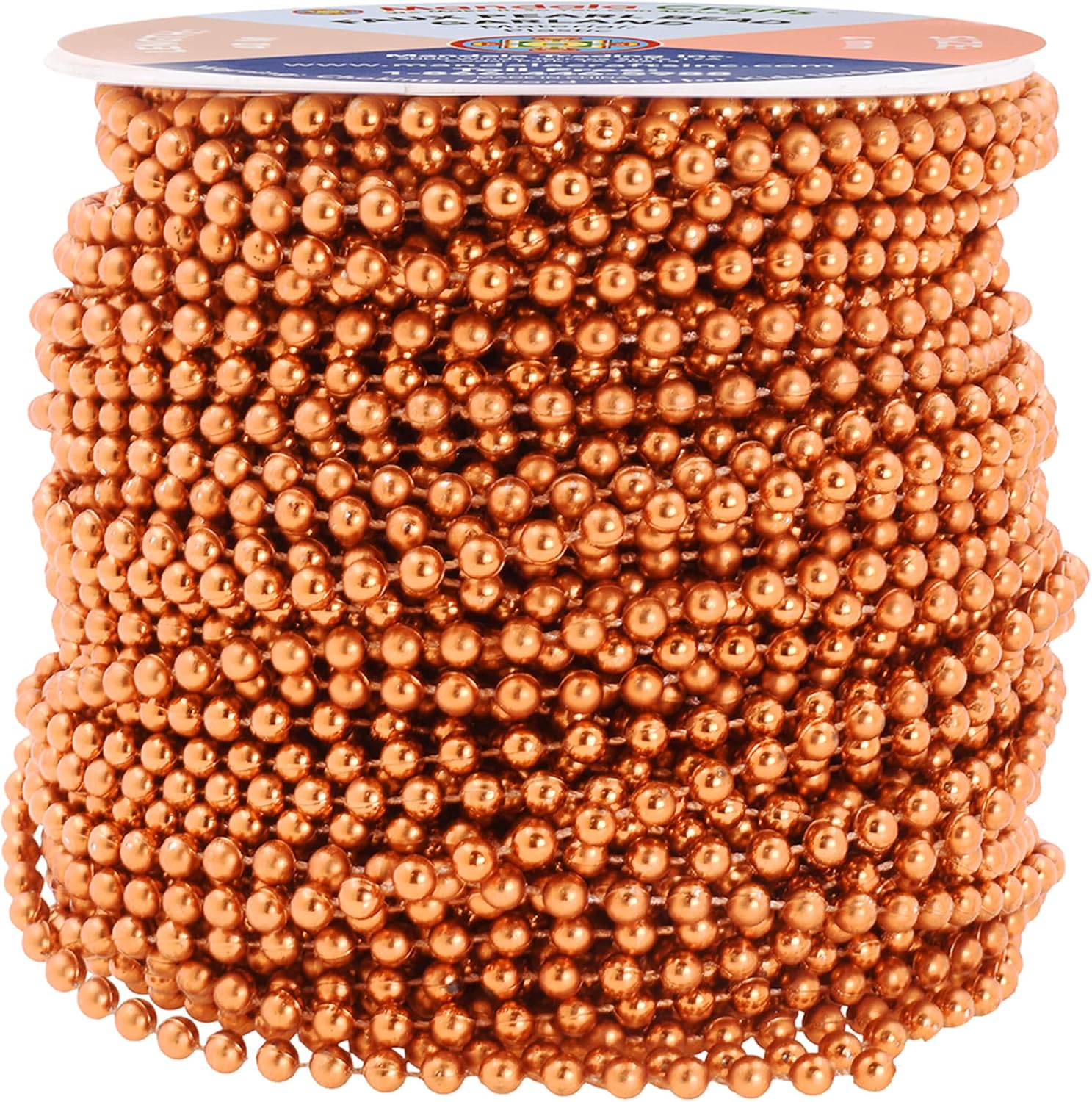 Mandala Crafts 4mm Faux Copper Pearl Beads Roll - 44 Yards Strand of Fake Pearls Chain Garlands Spool String for Christmas Tree, Wedding, Party, Vases, DIY Decoration