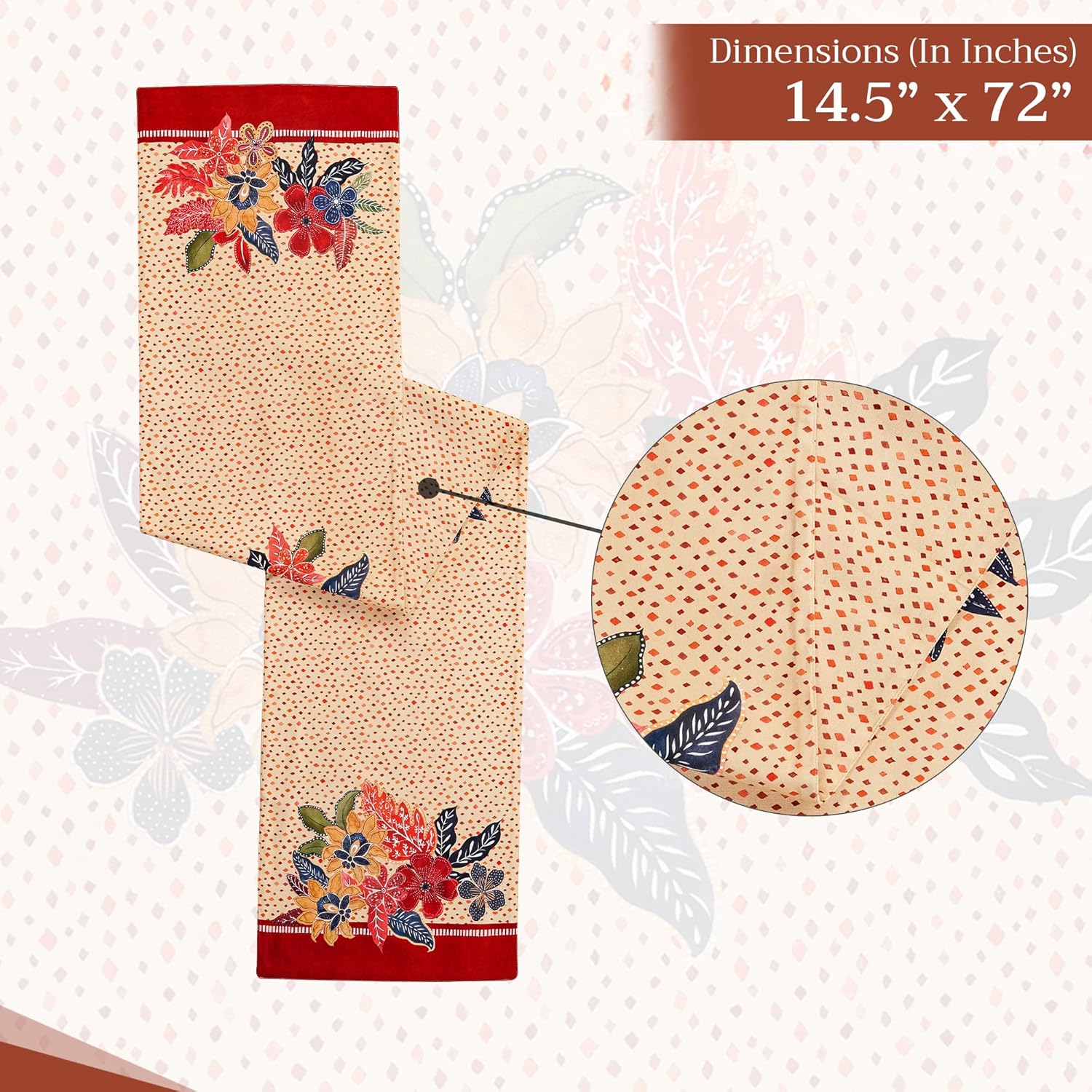- Package Includes: 1 table runner measuring 14.5" x 72", made from 100% cotton. Ideal for banquet tables, dining tables, or adding a spring, Thanksgiving, or Christmas touch to your party decor. This 72-inch table runner brings unique charm to both casual and festive settings