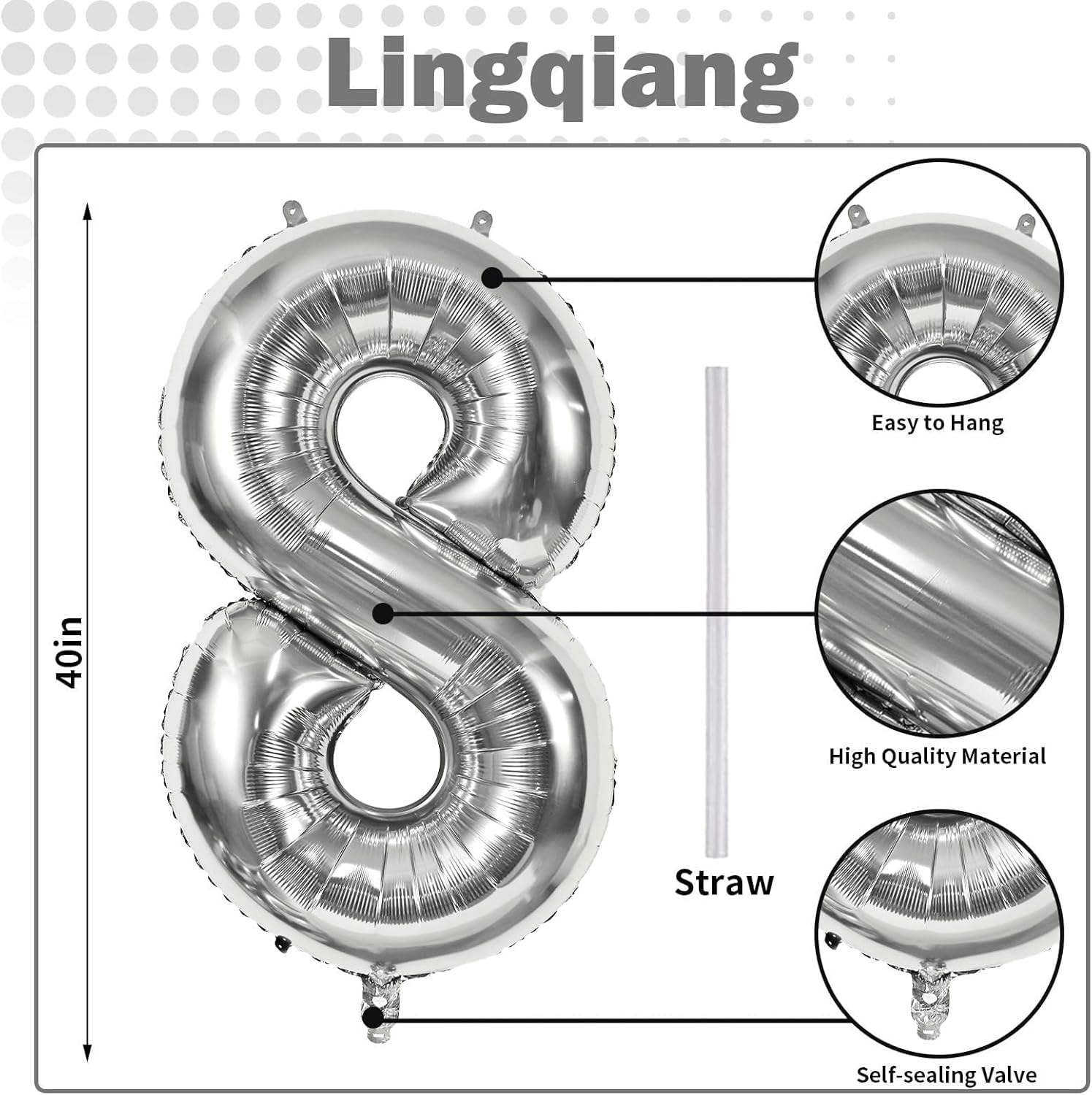 - š Silver Number 8 Balloon š - You will get 1pc 40 inch mylar foil number 8 balloon and 1pc straw. Perfect for 8th 18th 28th 80th 85th birthday or anniversary party decorations supplies.