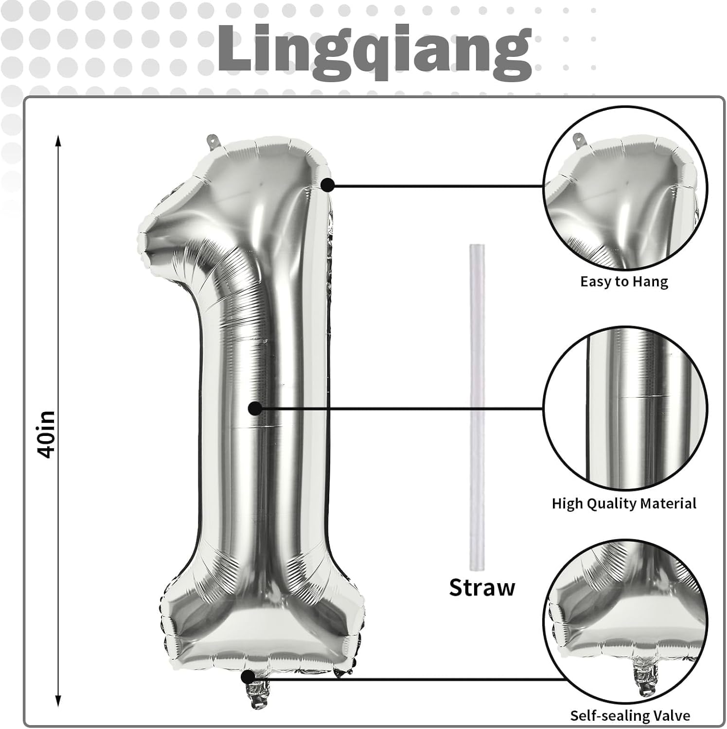 - š Silver Number 1 Balloon š - You will get 1pc 40 inch mylar foil number 1 balloon and 1pc straw. Perfect for 1st 10th 12th 13th 15th 16th 17th 18th 21st birthday or anniversary party decorations supplies.