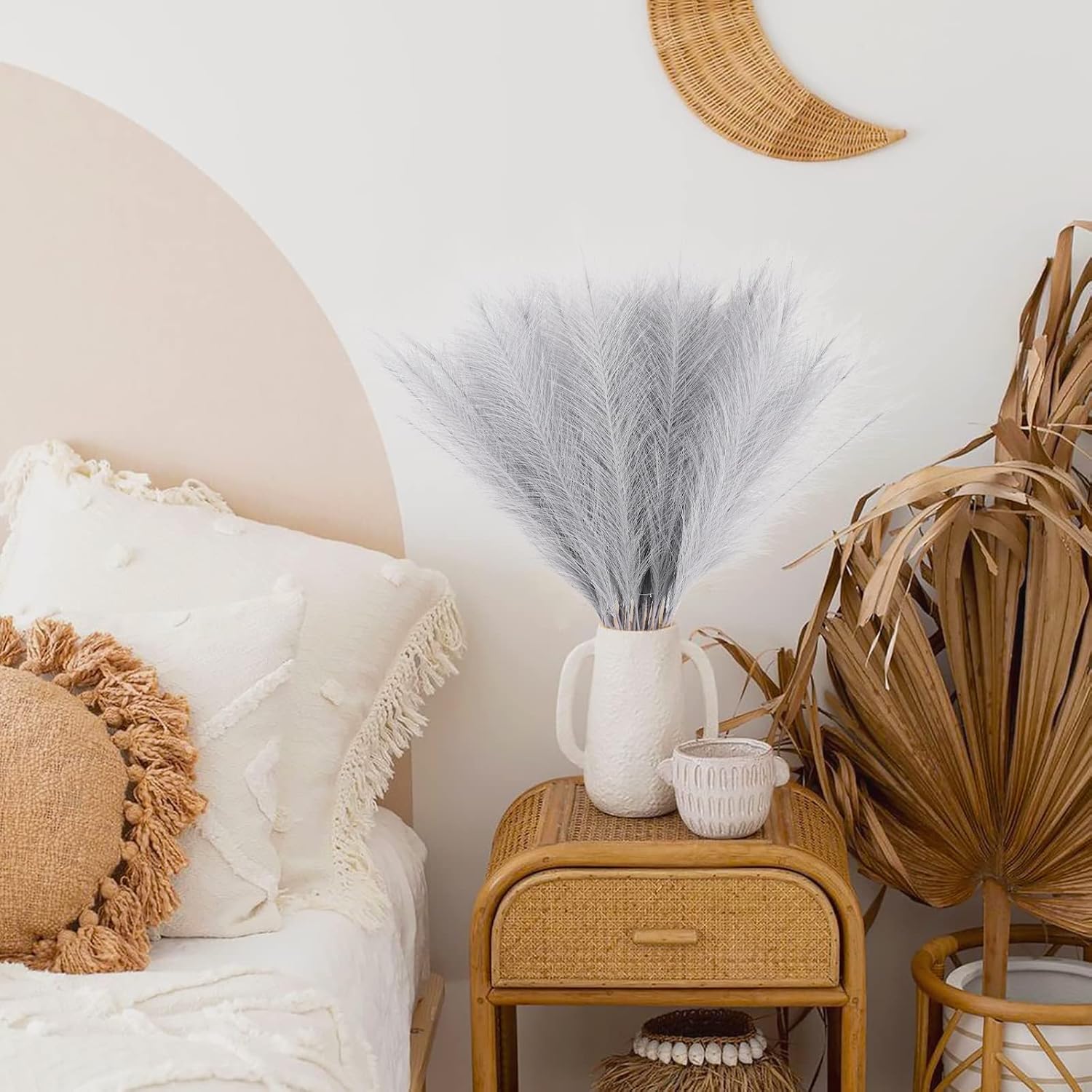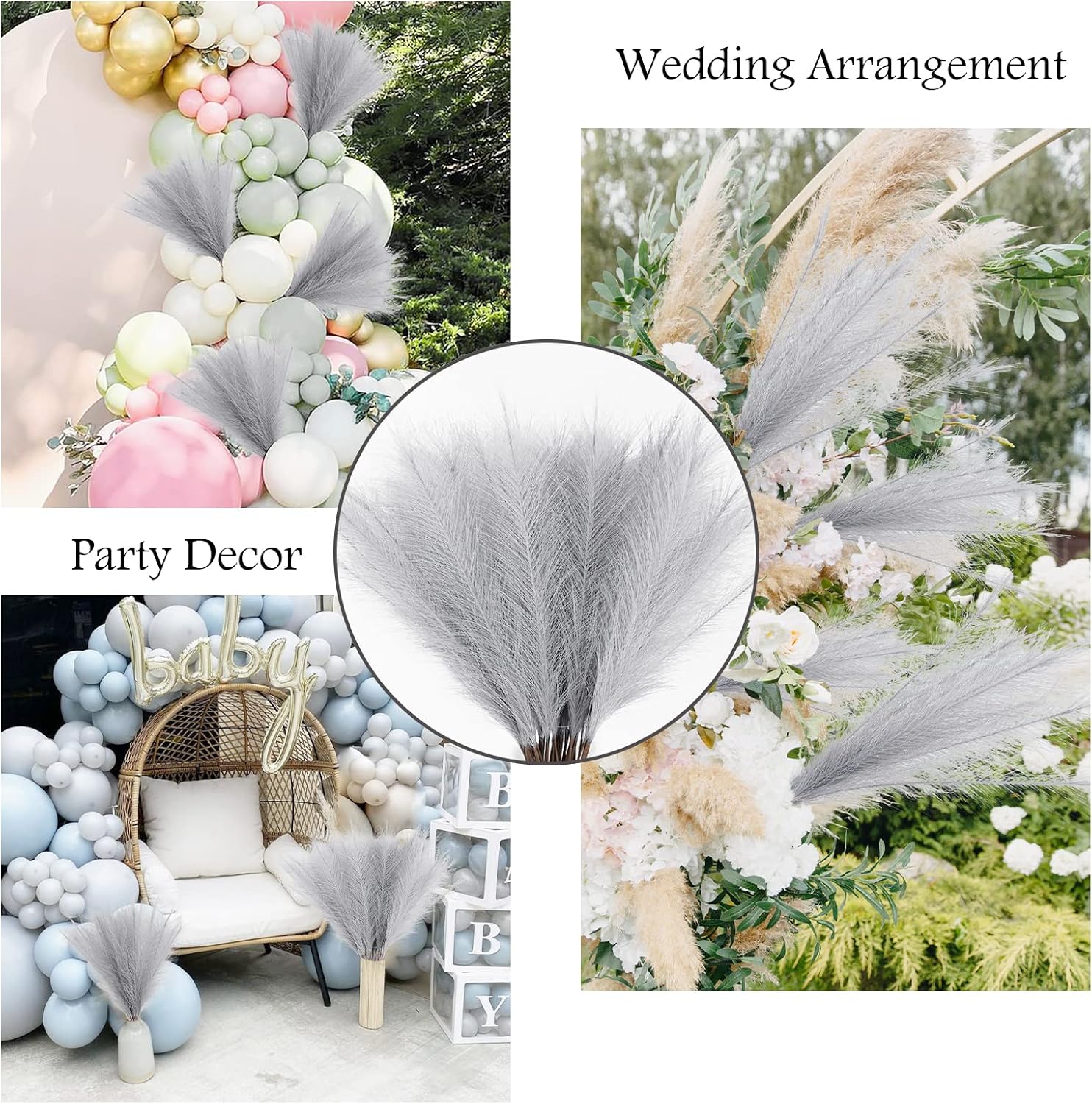 - Grey Pampas Grass Decor: You will get a pack of 50pcs artificial pampass grass, each stem 21.6β, and the heads of each stem is designed you can fluff them up for a fuller look, create a chic minimalist, or Bohemian modern display to complement your existing home arrangement