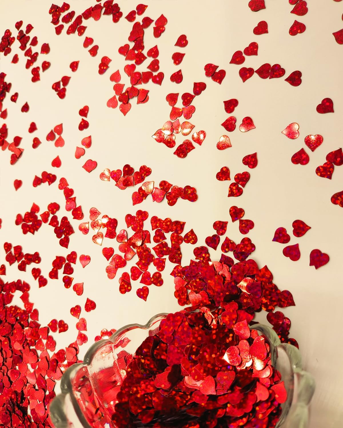 Heart Confetti Bulk - Glitter Hearts Shaped Sprinkles for Weddings, Valentines Day Decorations, Photo Shoots, Envelope Stuffing, Party Supplies & Memory Keepsakes (Red)