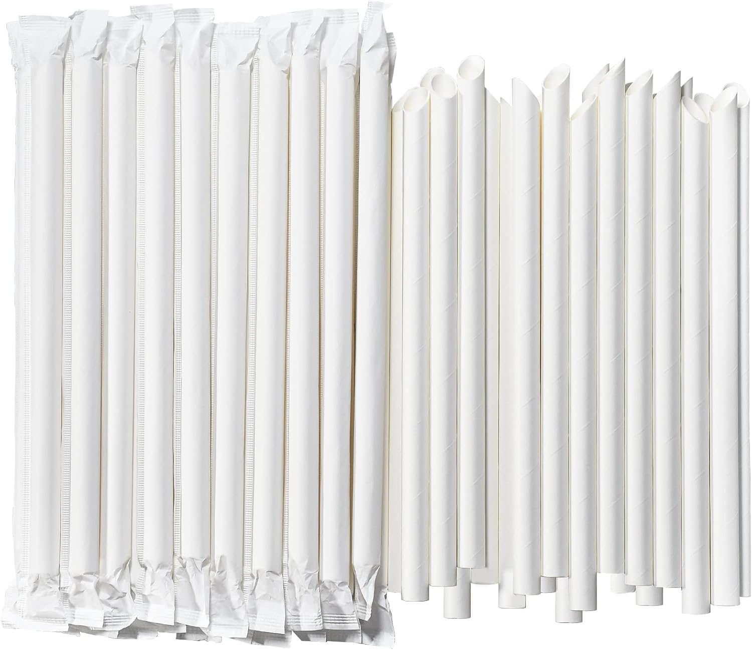 9 Inch Individually Wrapped Disposable White Paper Boba Straws, Bubble Tea Straws 100 Counts, 0.5"/12mm Wide - Pointed End, Extra Thick, Fat - Eco-friendly Biodegradable
