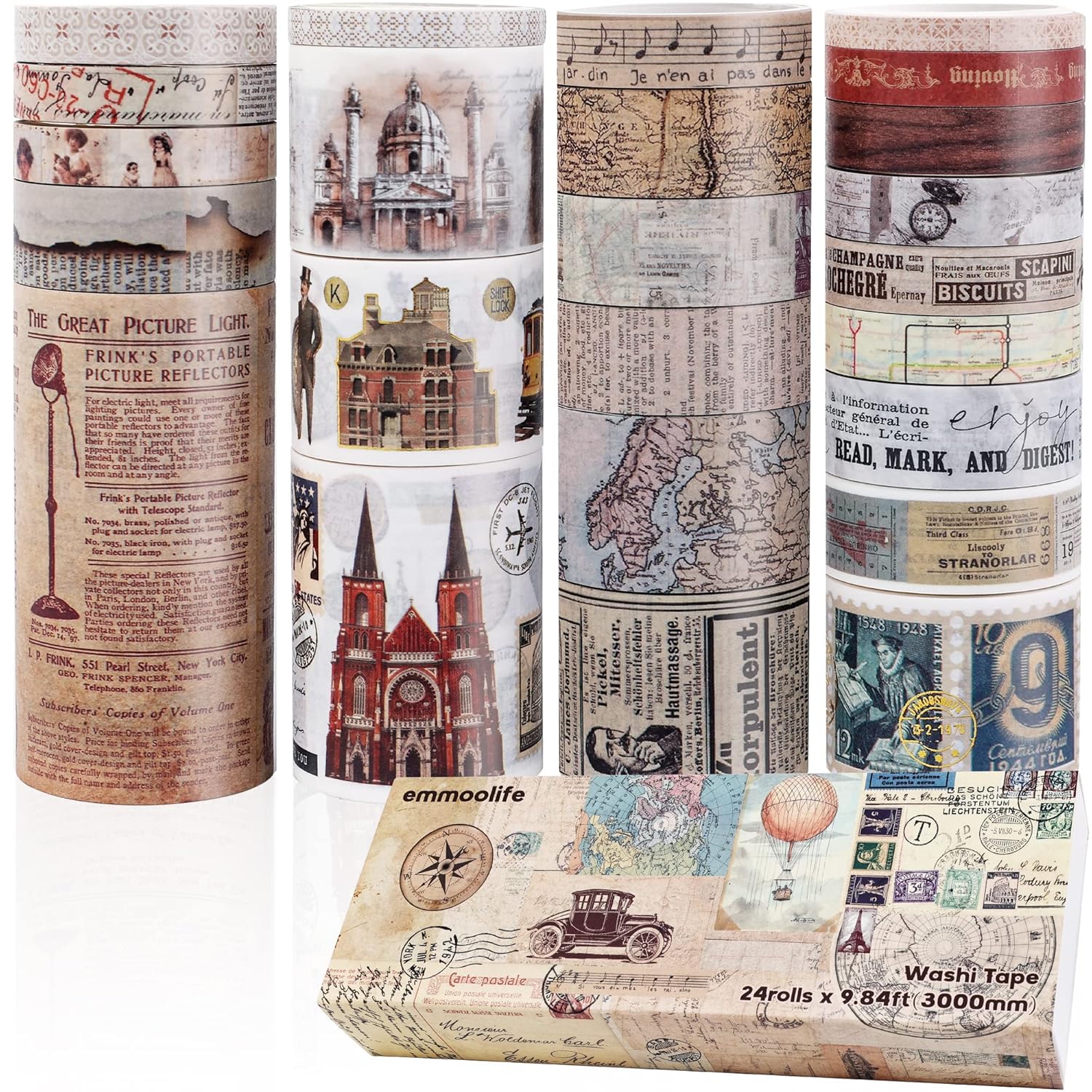 - This washi tape set comes with assorted vintage washi tape in various designs, their classic prints includeantique music sheets, handwritten script, world architecture, old newspaper articles, bicycles and electronic devices, retro buildings bike decals and more. which look very classic and vintage aesthetic washi tape kit, not easy to go out of date, bringing you enjoyment.