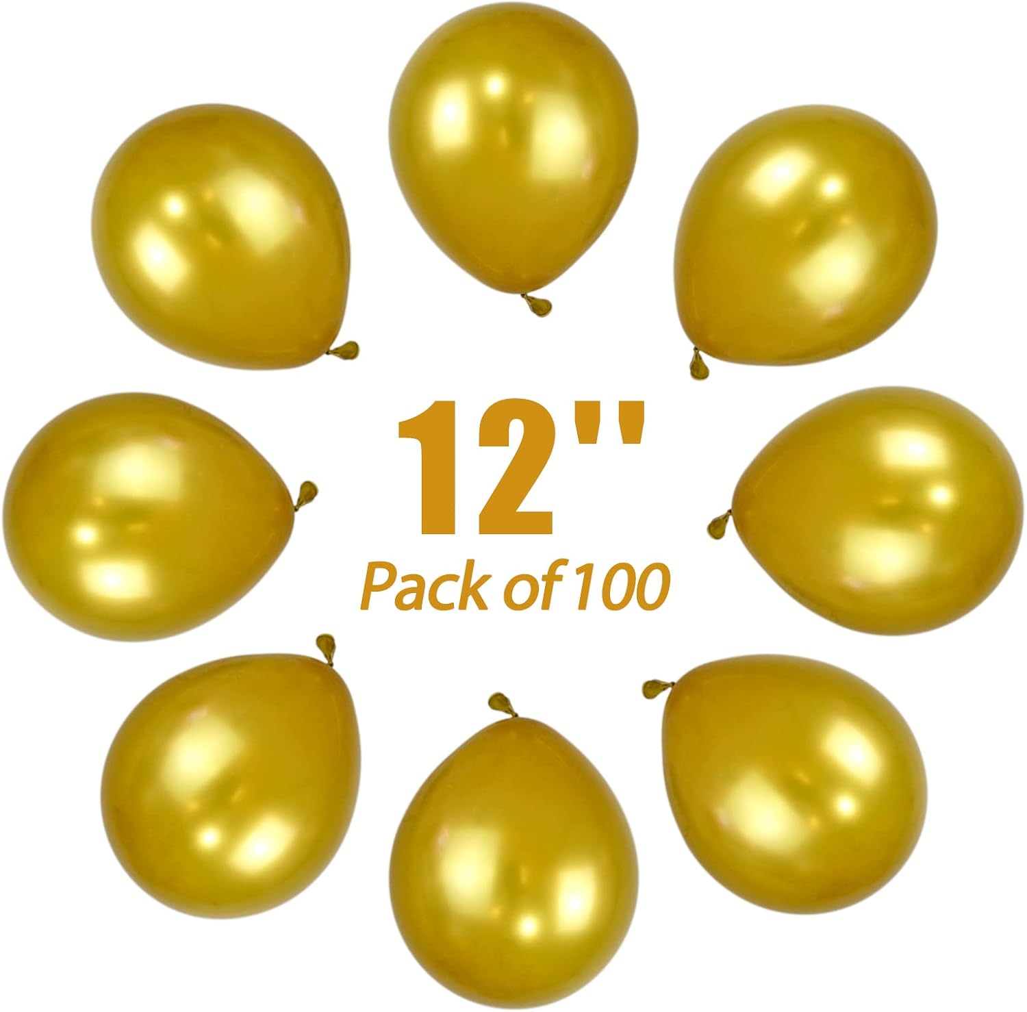 - Packaging and size: Each pack contains 100 chrome gold balloons. They are 12 inches in diameter and come with 2 rolls of ribbon. A must-have accessory for your party