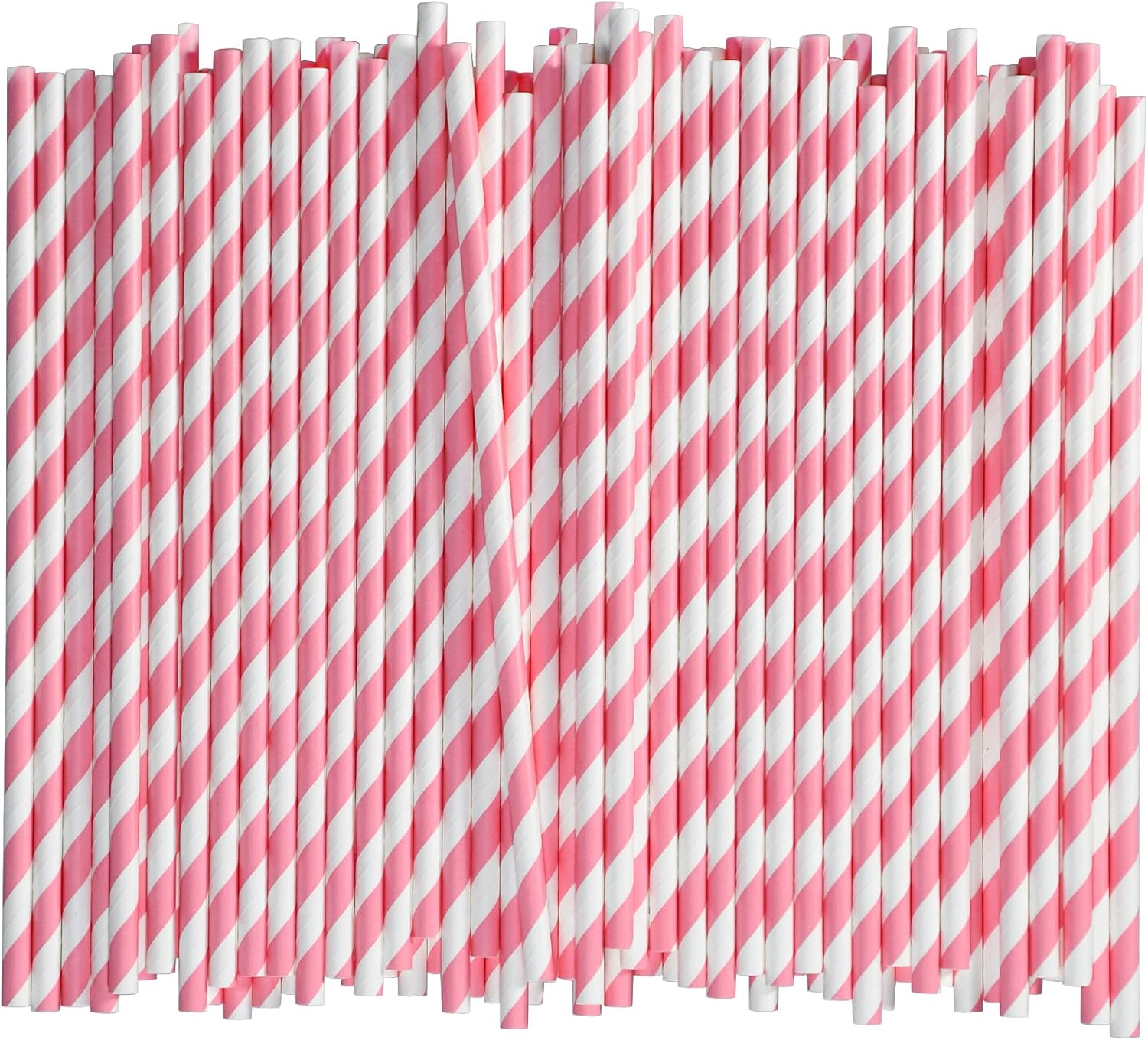 [1000 Count] Chunspak Pink and White Striped Paper Drinking Straws Bulk, 7.75" x0.24", Unwrapped - Biodegradable and Compostable