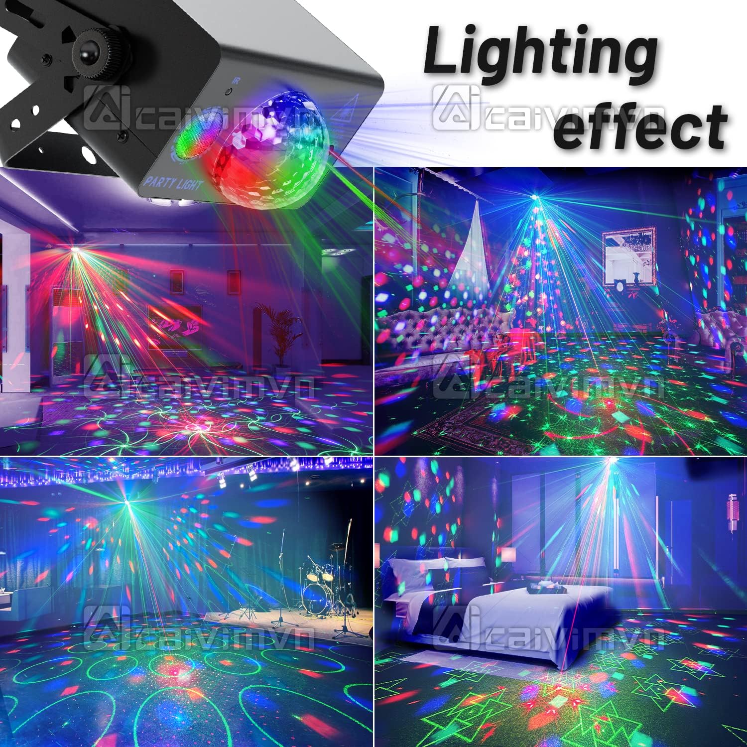 - ✨【3 in 1 Disco Light】Metal shell party lights with 7 colors of LED background lights, RGB colored disco ball lights and Pattern lights (red, green and red & green), 3 types of lights combined together to produce a very cool effect! A single party light can cover a 400 square foot venue.