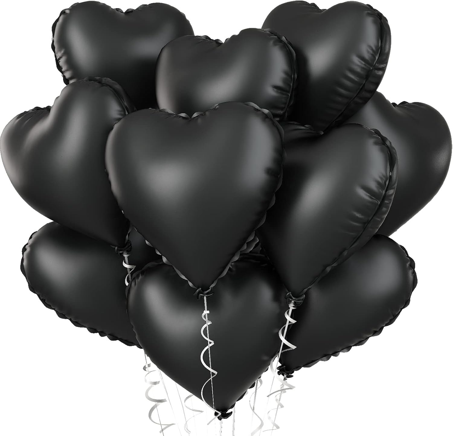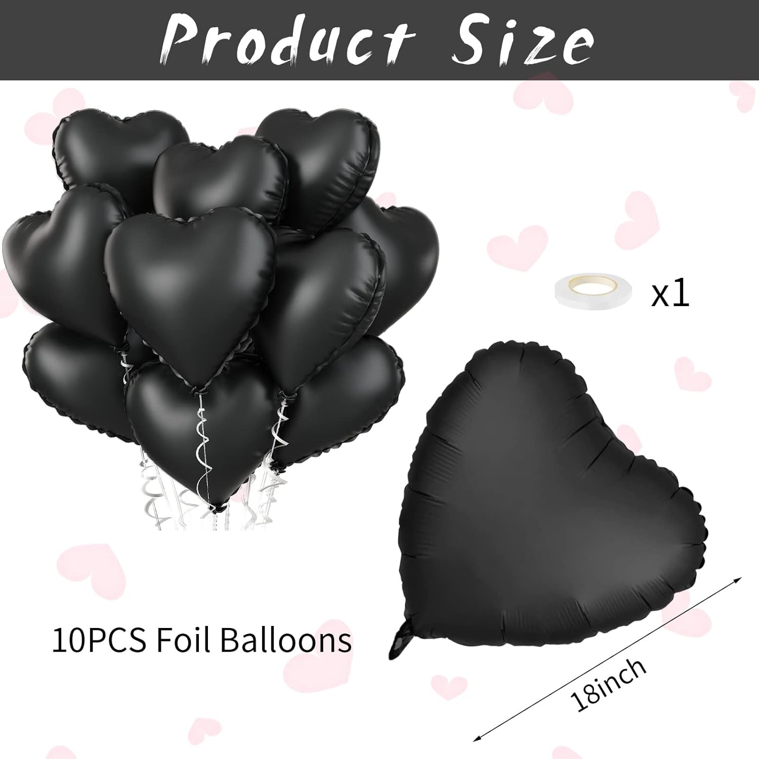 - š 10 PCS BLACK FOIL HEART BALLOONS: Package contains 10 x 18 inch black heart balloons, 1 x 10m ribbon.The black heart shape balloons are specially shaped, the perfect size for your holiday or party decorating needs, together create a fun and surprising party, leave an unforgettable smile!