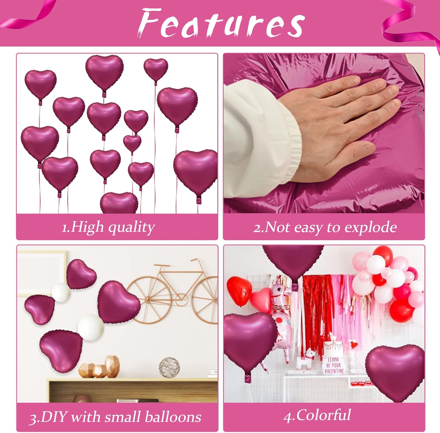 - š 10 PCS PINK FOIL HEART BALLOONS: Package contains 10 x 18 inch hot pink heart balloons, 1 x 10m ribbon.The hot pink heart shape balloons are specially shaped, the perfect size for your holiday or party decorating needs, together create a fun and surprising party, leave an unforgettable smile!
