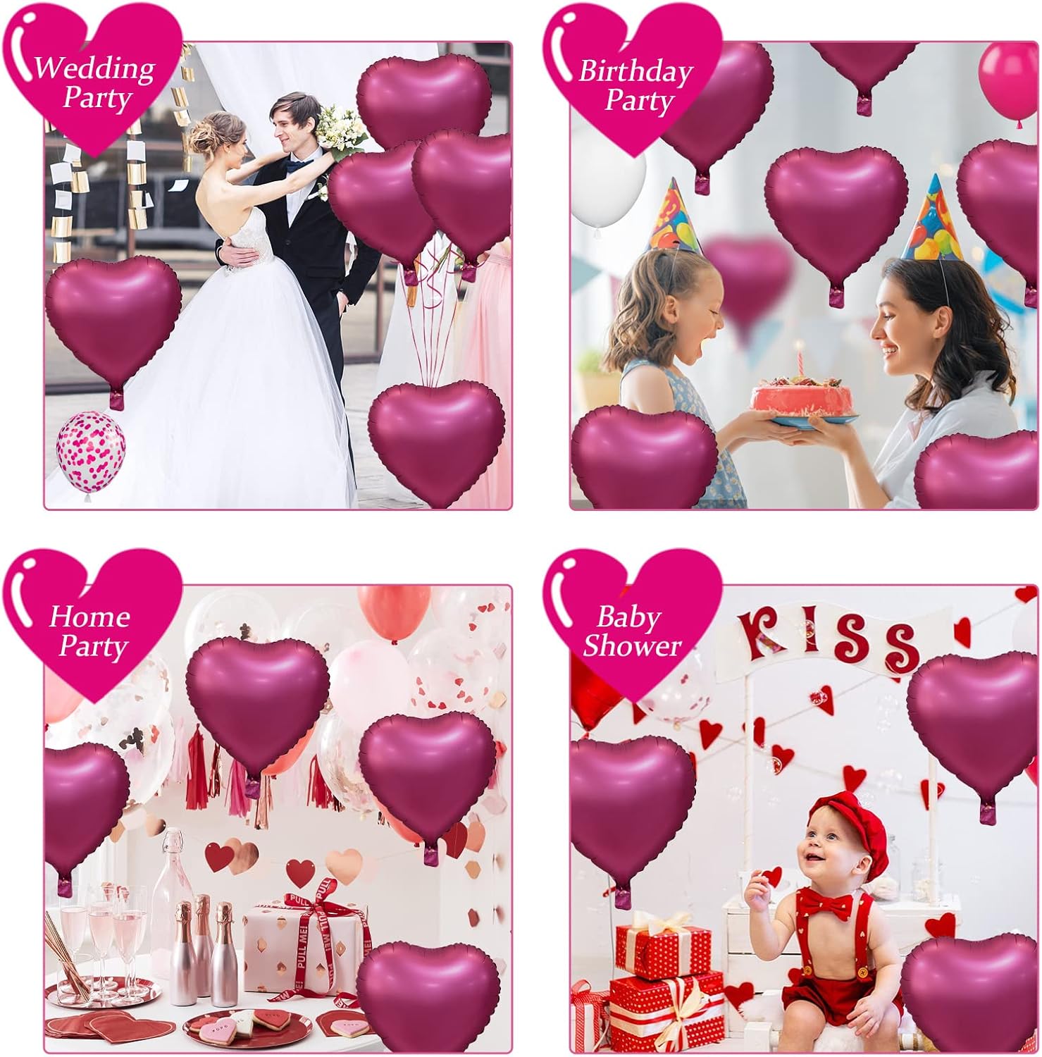 - š HIGH QUALITY FOIL BALLOONS: The surface of the heart balloons is a metal matte surface. All materials of heart balloons are of high quality and good safety foil, which is very durable, harmless, not easy to break and last a long time, glossy, beautiful in shape. Our foil heart shape balloon set can create an exclusive sweet atmosphere for party.