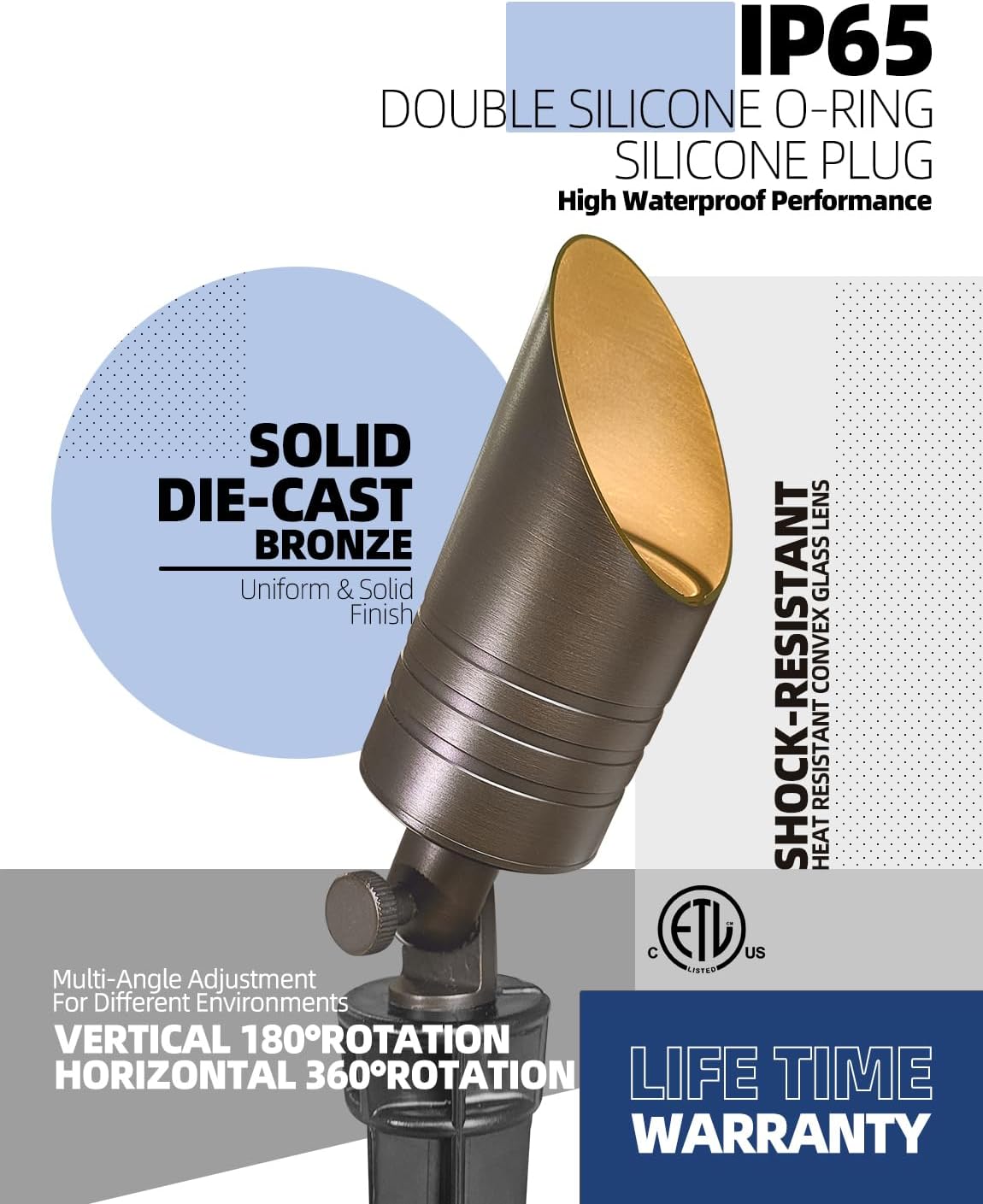 - ETL LISTED:This landscape outdoor spotlight fixture is ETL Listed to guarantee customers' safety. Work with 12V AC/DC low voltage, safe for children and pets, there is 6 feet 18GA wire easy to connect to existing systems. This spotlight must be powered by a 12-24V low voltage transformer (not included).