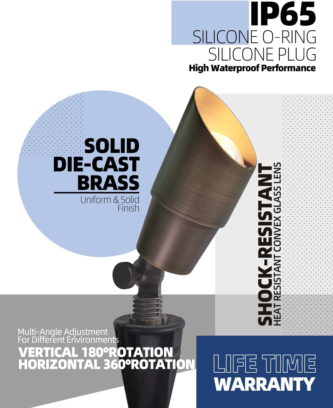 MALORY Brass Outdoor Spot Lights 1 Pack Without Bulb Kit(S01),12V AC/DC Low Voltage LED Landscape Lighting,Outdoor Lights for Patio, Garden and Yard with Ground Stake and Wire Connector
