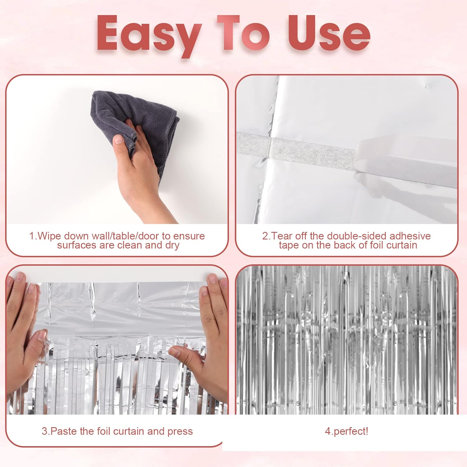 - Premium Material: This silver foil curtain backdrop is made of stable tinsel, non-fading, stay shiny and reusable. Unfold it and then enjoy your glittering party