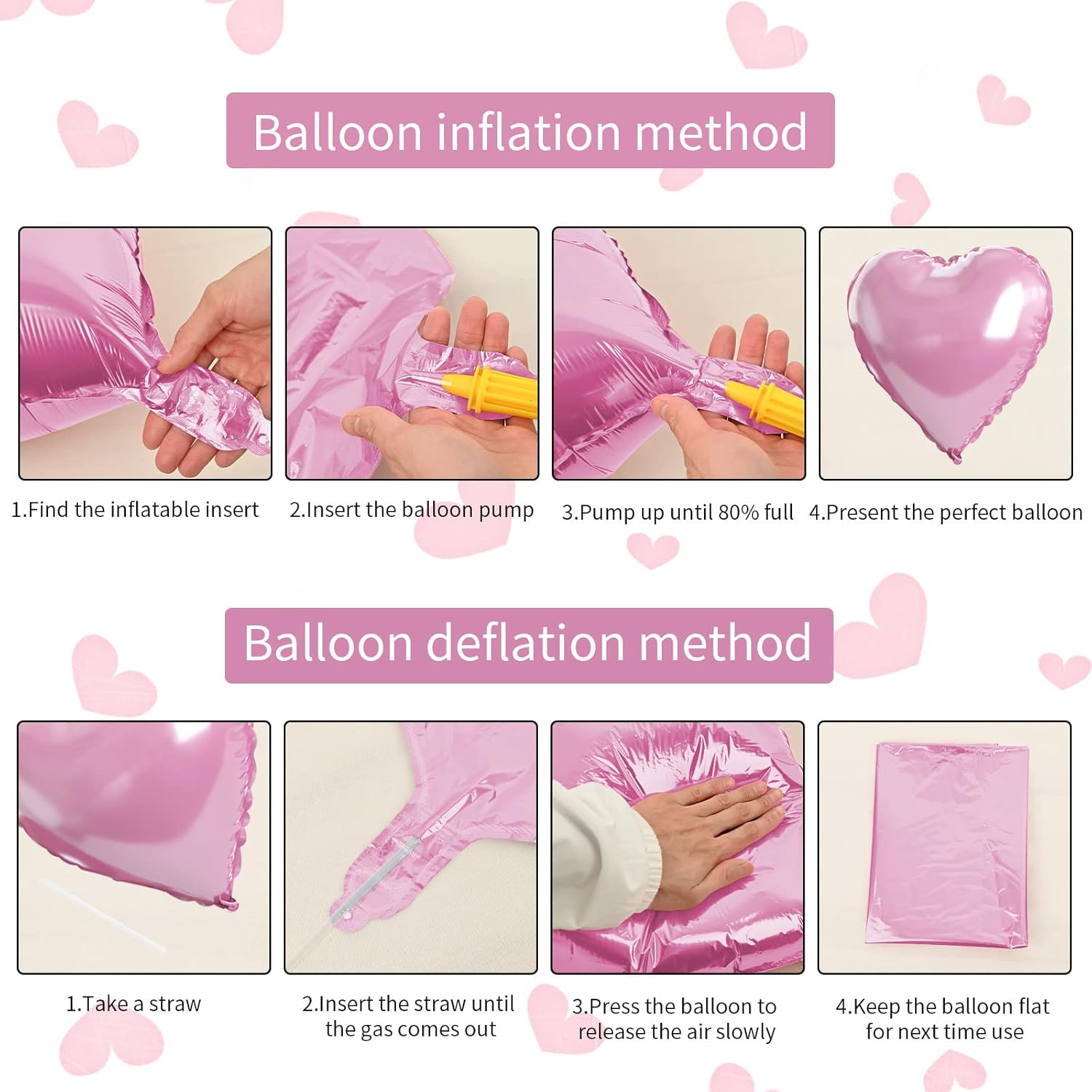 - š Easy To Use: These pink heart shaped birthday balloons can be filled with air or helium (inflate to 85%-90%, to prevent it from becoming too large and exploding). The valve seals automatically when inflated, and the gas inside can be emptied with a plastic straw, making them reusable. The set also comes with 10 meters of ribbon, making it easy to decorate your room for your children and spouse.