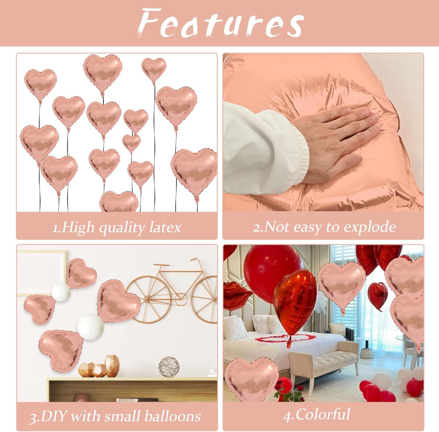 - š Versatile Decoration: Our rose gold heart balloons are perfect for a wide range of celebrations, including boy's and girl's birthday parties, baby showers, Valentine's Day decorations, wedding parties, bridal showers, princess parties, anniversaries, and more. They are perfect for balloon bouquets, home and table decor, wedding aisle decoration, photo backgrounds, party supplies, and other events.
