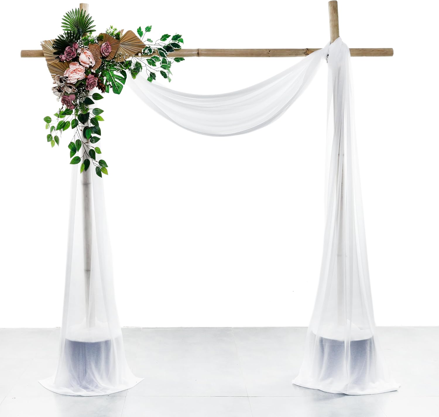 VDS Pack of 2 Panel (30 Inch X 20 Feet) Wedding Arch Draping Fabric Sheer Chiffon Fabric Drapery for Wedding Ceremony Reception Swag Backdrop Canopy Chuppah ARBO Altars Decoration (White)