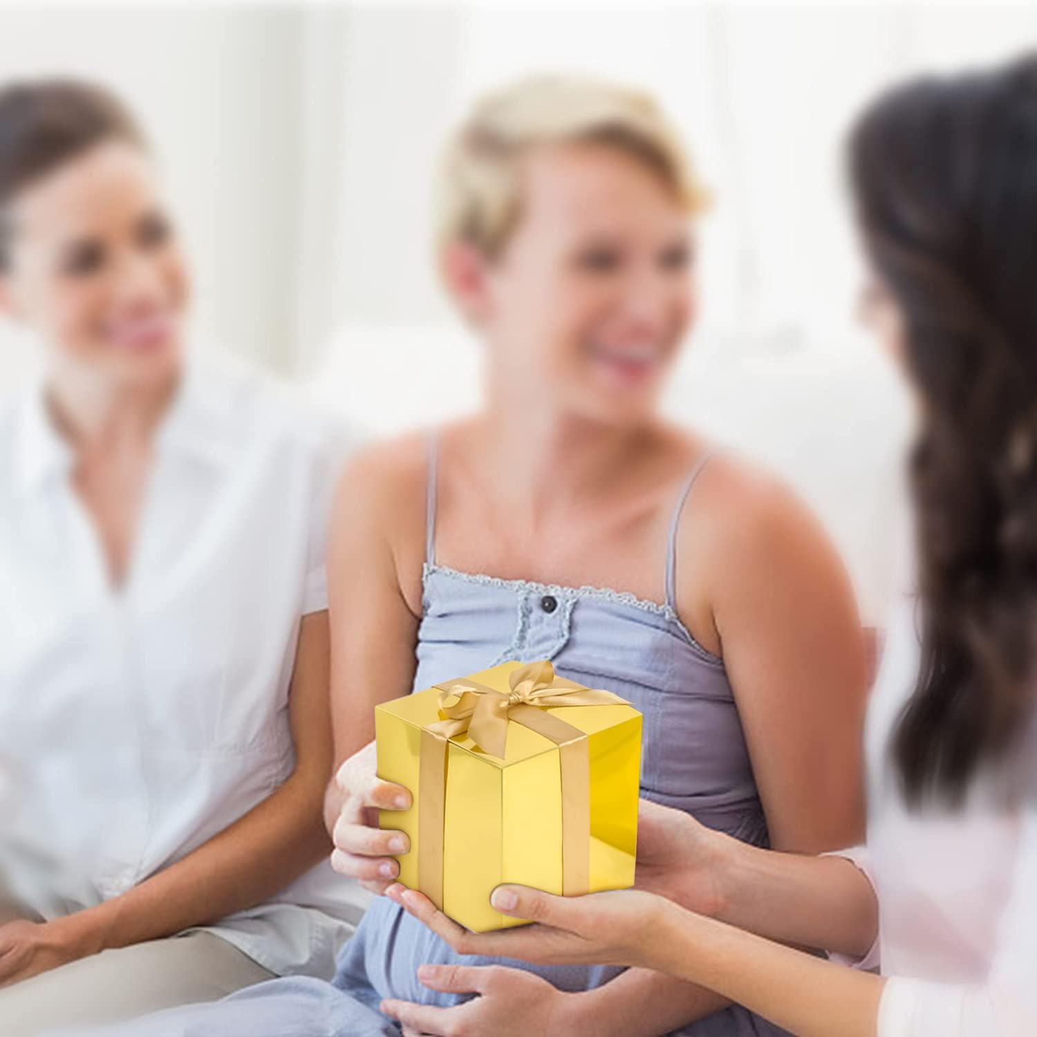 COTOPHER Small Gift Boxes 25 Pack 5x5x5 inches Gold Gift Boxes with Lids for Gifts, Crafting, Wedding Party Favor, Cupcake Boxes, Candy, Bridesmaids Proposal Box with Ribbons and Stickers