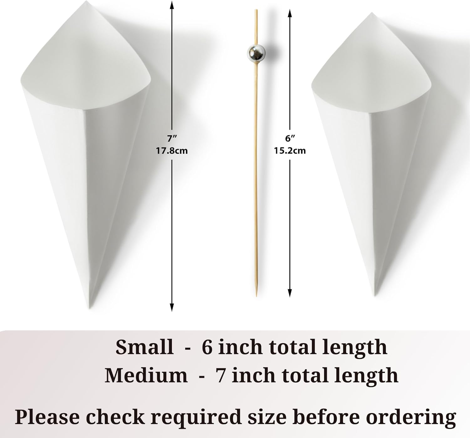 - DELIGHT YOUR GUESTS - Disposable paper cones are great for indoor or outdoor entertaining, buffets, parties, and catered events. White cones contrast well with fillings, allowing them to pop. Our tasting cones allow for perfect portions and do not stick together, unlike many bamboo cones.