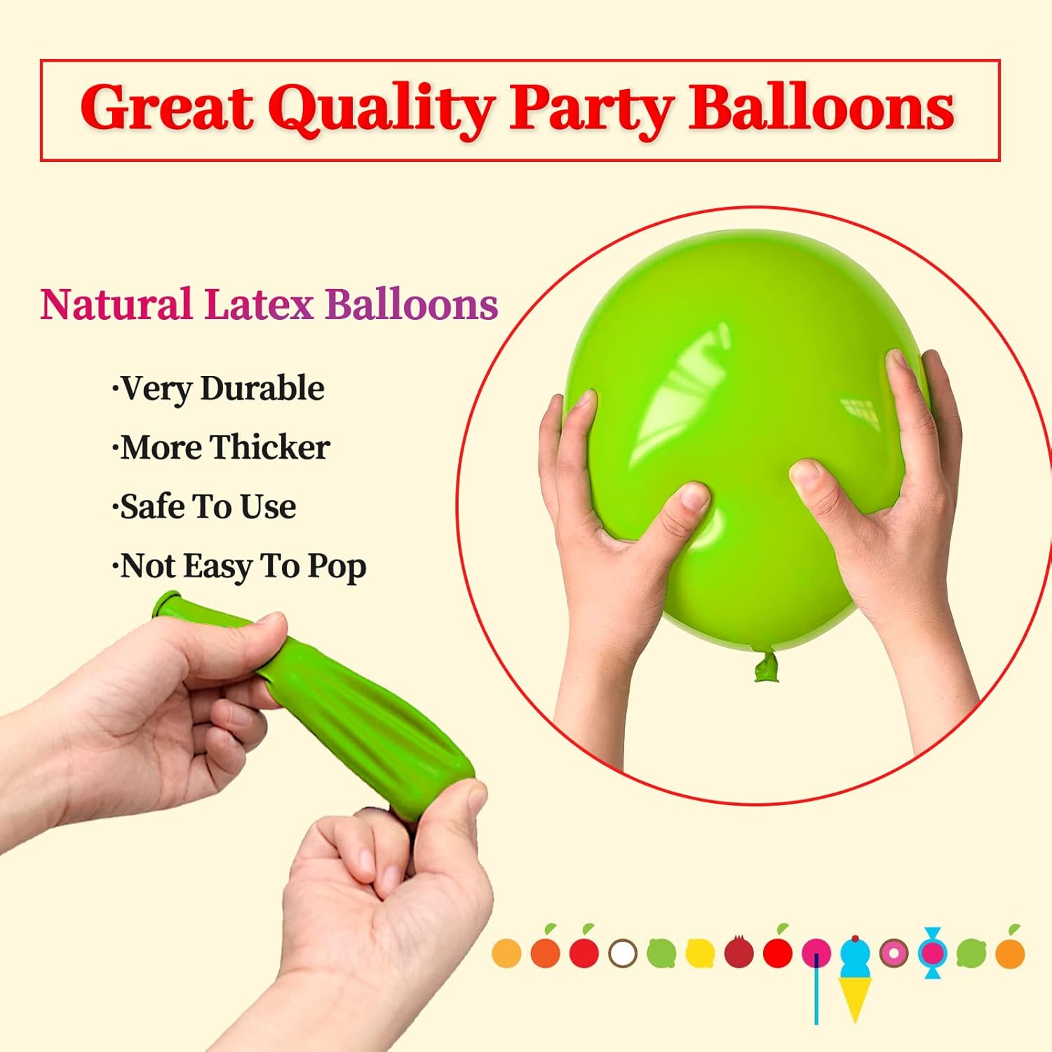 - Our green birthday balloon 12 inch balloon is made of thickened latex, the color is bright green, these green balloons can be used as balloons decorations for birthday party, and play around children.