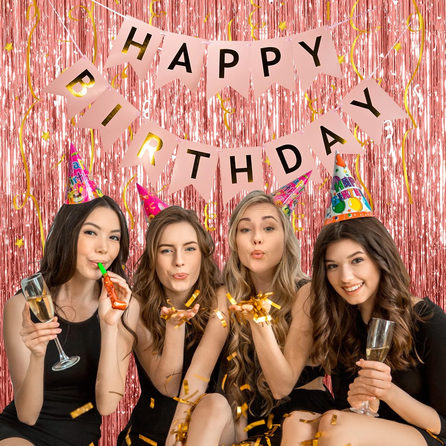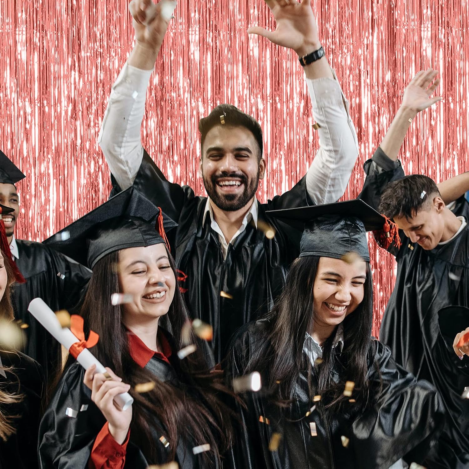 5 Pack Foil Curtain Backdrop Rose Gold Metallic Tinsel Foil Fringe Curtains Photo Booth Props for Birthday Wedding Engagement Baby Shower Bachelorette Christmas Holiday Celebration Party Decorations