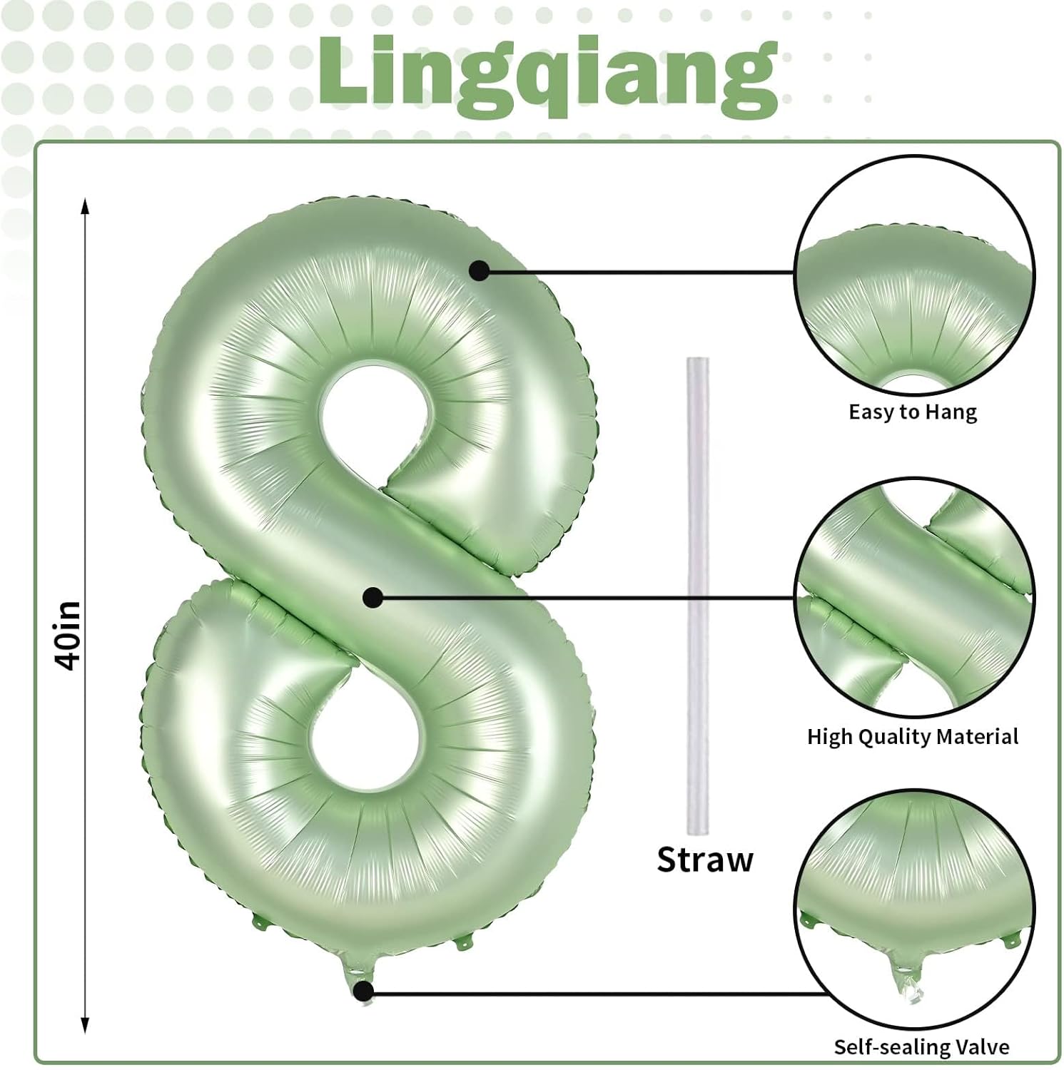 - š Sage Green Number 8 Balloon š - You will get 1pc 40 inch mylar foil number 8 balloon and 1pc straw. Perfect for 8th 18th 28th 80th 85th birthday or anniversary party decorations supplies.