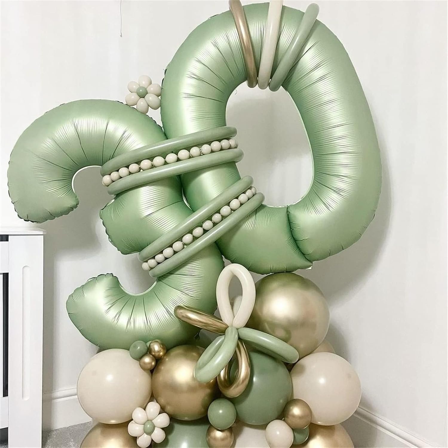 - š Easy to Inflate š - The big sage green number 7 foil balloons have self-sealing valve does not need to be knotted for easy inflation and deflation. It can be inflated with air or helium. When filled with helium, the balloons can float in the air; after filling, press the valve of the digital balloon to seal it. It can be reused. Do not throw away after use!