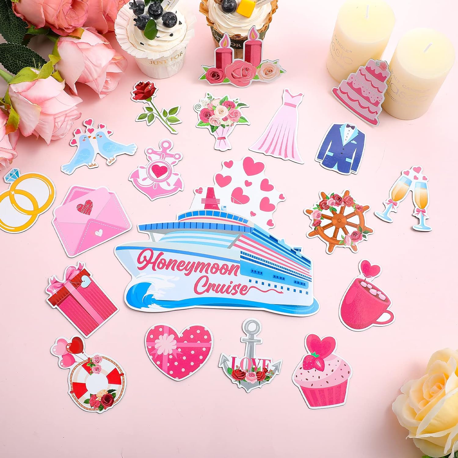 - Full of Honeymoon Wedding Elements: the honeymoon cruise door magnets have various patterns, such as anchors, cruise ships, balloons, rings, cakes, flowers and many other wedding related elements, lifelike and attractive; Using them as decorations will create a joyful and impressive wedding party for you