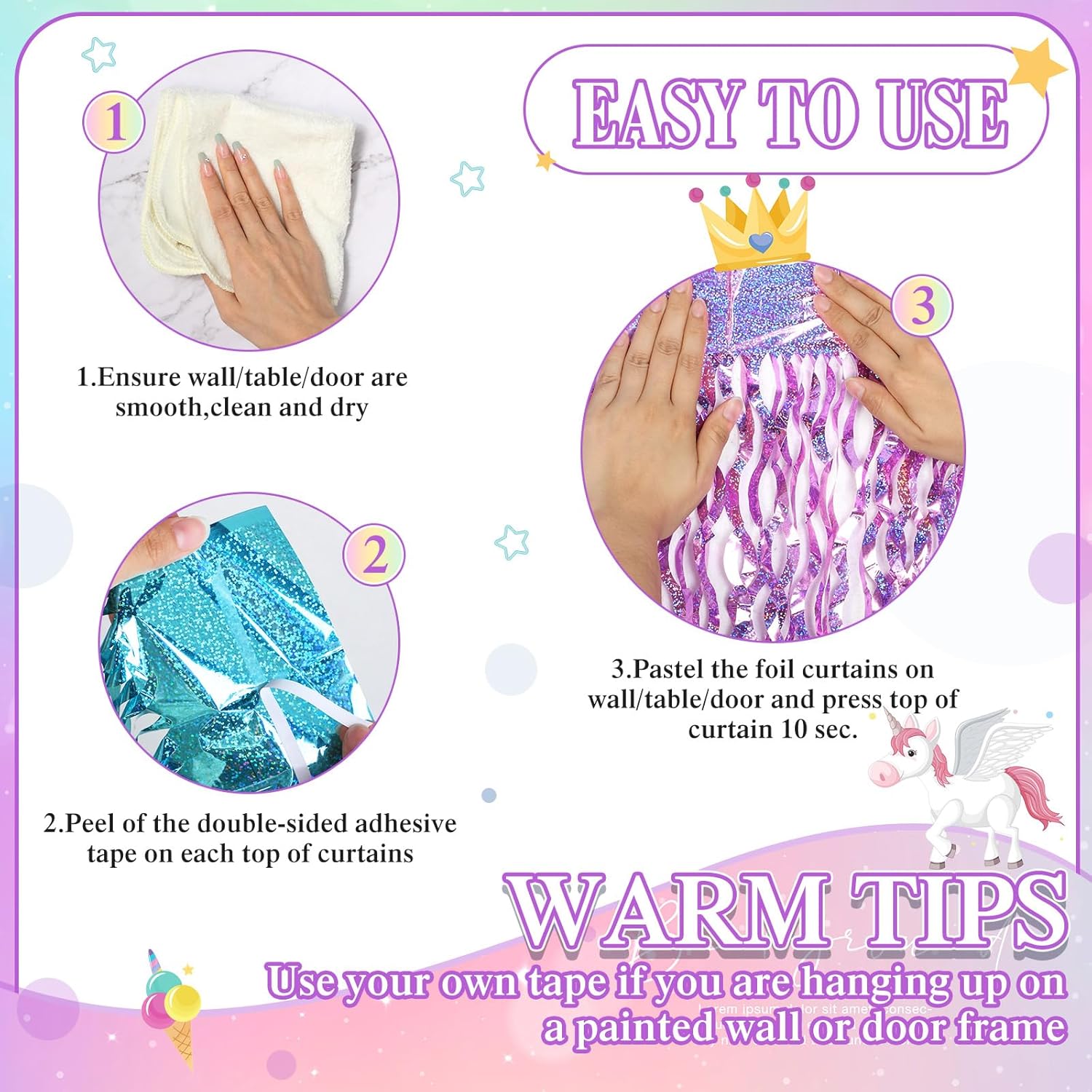 - Sufficient Quantity: you will get 6 pieces of tinsel foil fringe curtains in light purple, light pink and blue green 3 colors, which are sufficient in quantity to satisfy your party scene setting and decorating needs, also you can share them with your mates