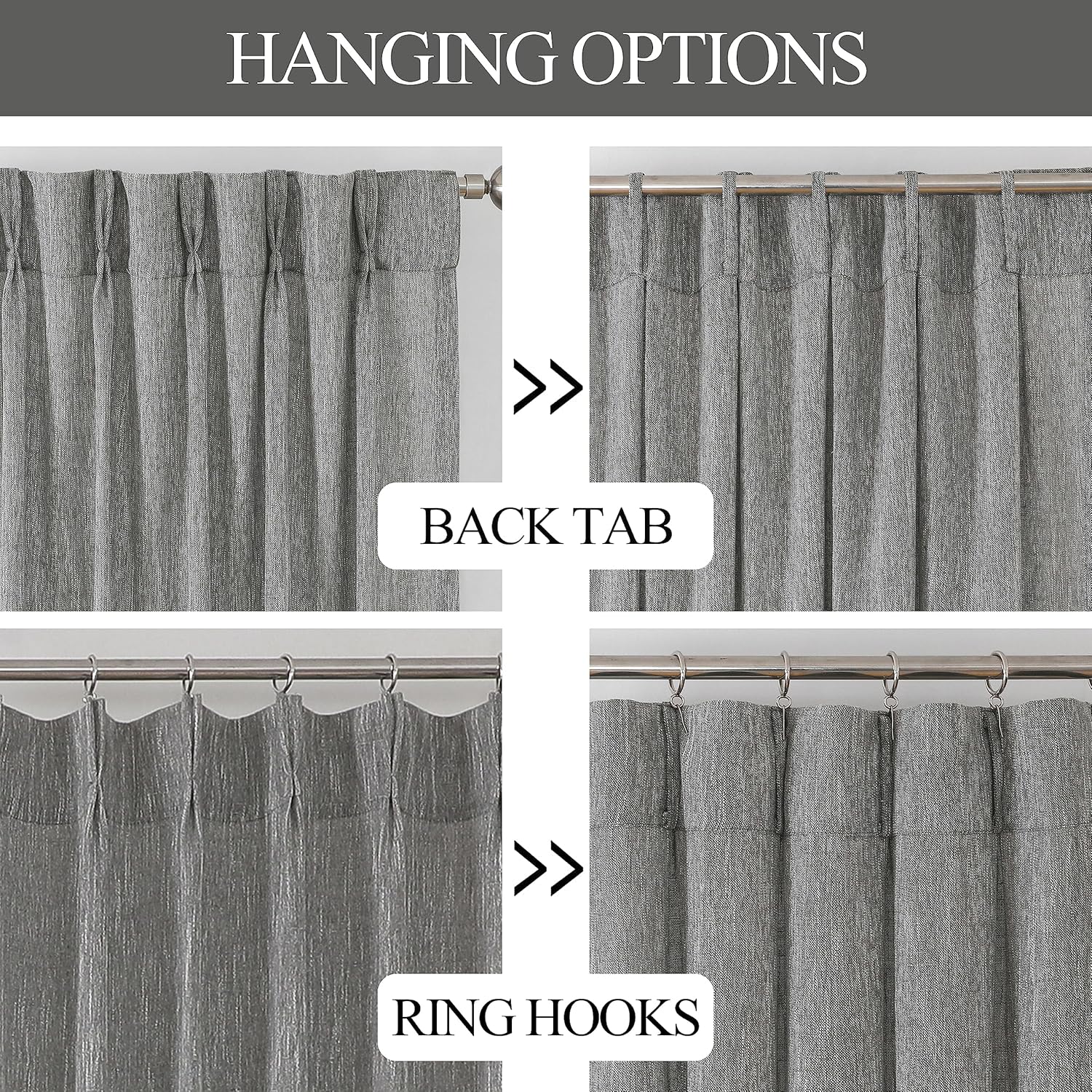 - Multiple Hanging Ways:Rustic Casual curtains have many hanging options to meet your different home dΓ©cor needs:back tabs(4 inch),clip rings,ring hooks or for track system.Please note that 18 hooks are in the package but clips and rings are not included.Two weighted hems sewn at the bottom increase the draping effect.Moving the pinhooks position to adjust the total height by 1-2 inches