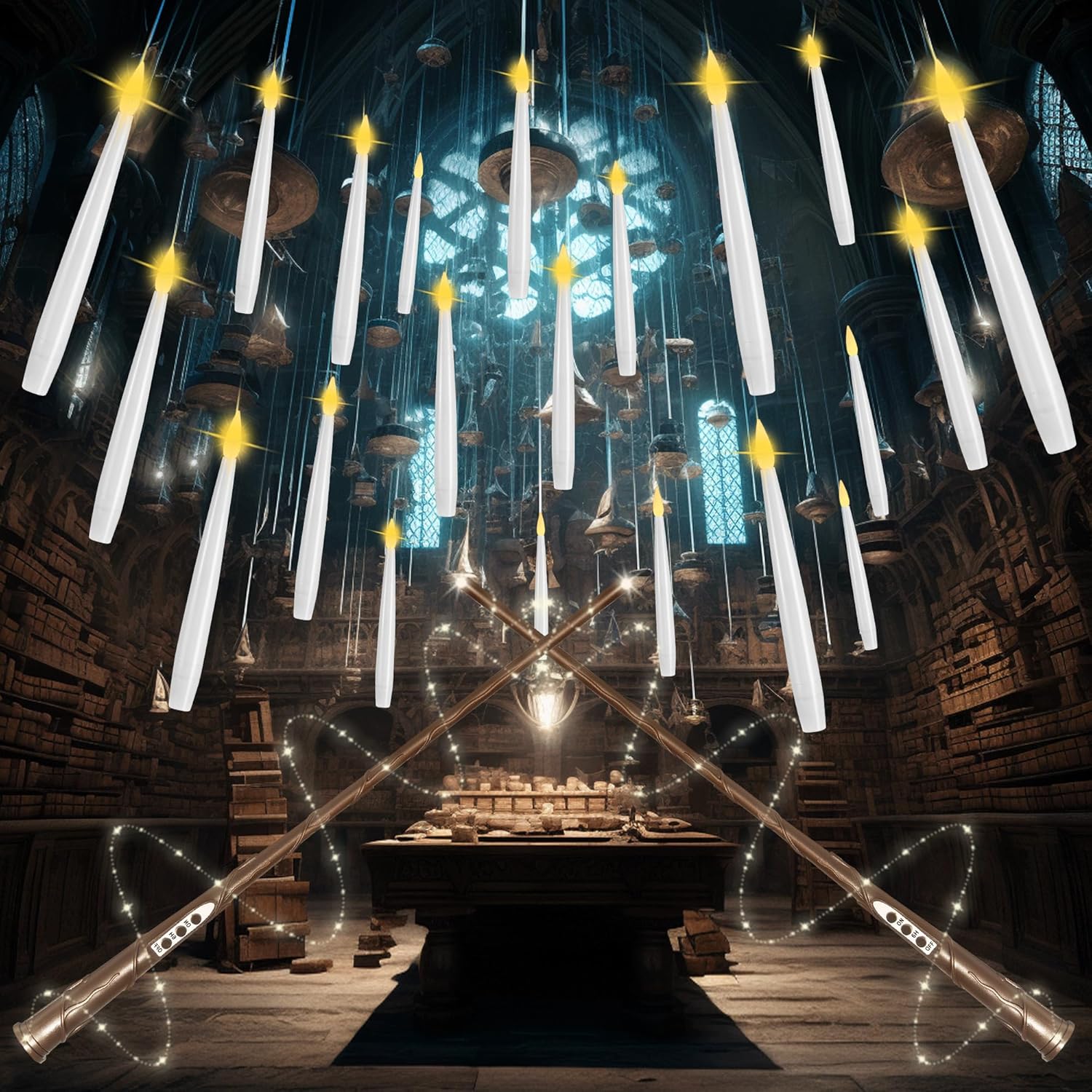 - 🔮MAGICAL GIFTS FOR FAMILIES🔮 Different from other floating candles, our magic LED candles have 2 lighting modes: Always on and flicker like real candles. Use your magic wand to control the candles and practice your magical skill. 3D realistic flicker design looks like a real taper candle flame flickering. Meanwhile, there is absolutely no fire or burning danger, you will have perfect ambient evenings with peace of mind.