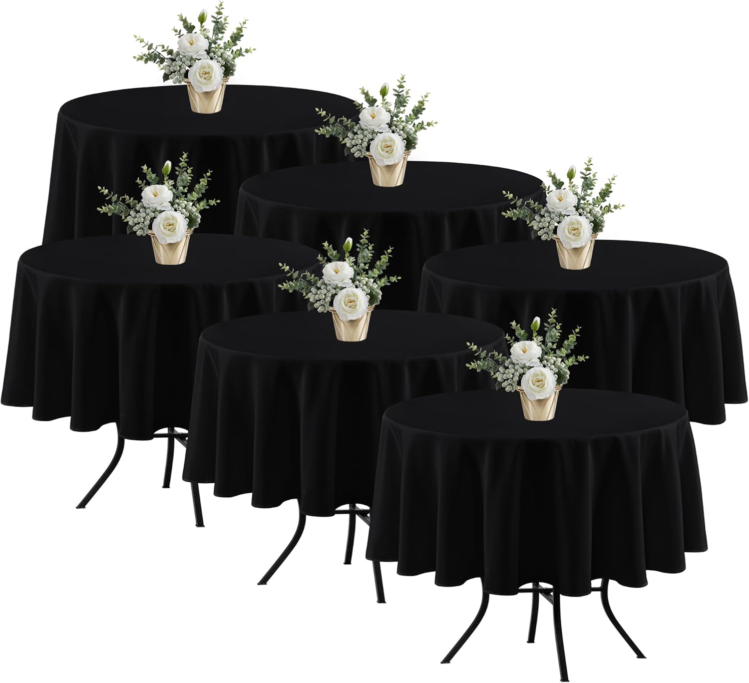 Fitable 6 Pack Black Round Table Clothes - 70 Inches in Diameter - Stain Resistant and Washable Tablecloths, Polyester Fabric Table Covers for Wedding, Party, Banquet, Gathering