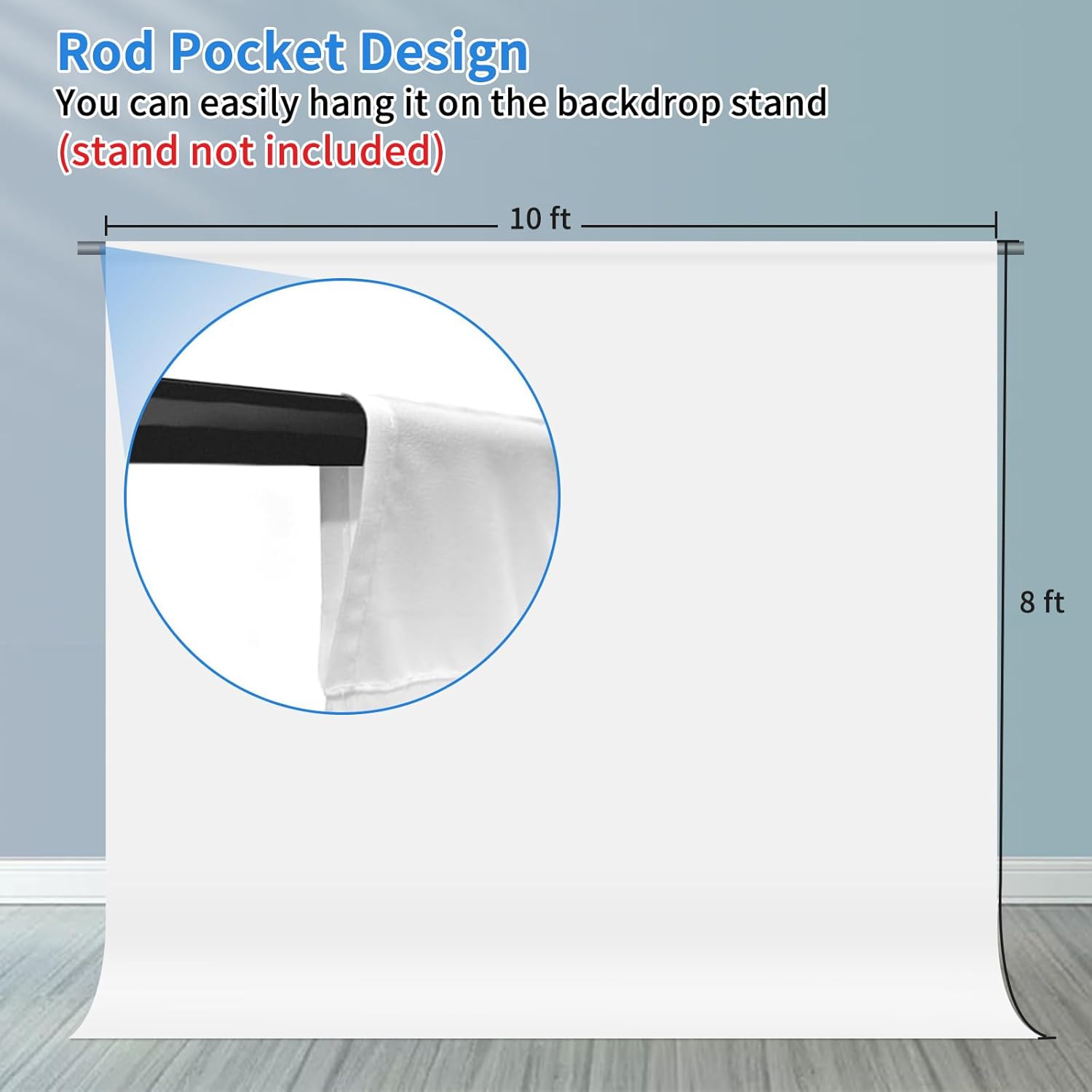 - Easy Setup & Care: Features a convenient rod pocket (on the 10ft side) for quick mounting on any backdrop stand. (Note: Stand not included). ⚠️ To ensure a flawless look, simply use a steam iron to remove wrinkles from shipping folds before first use