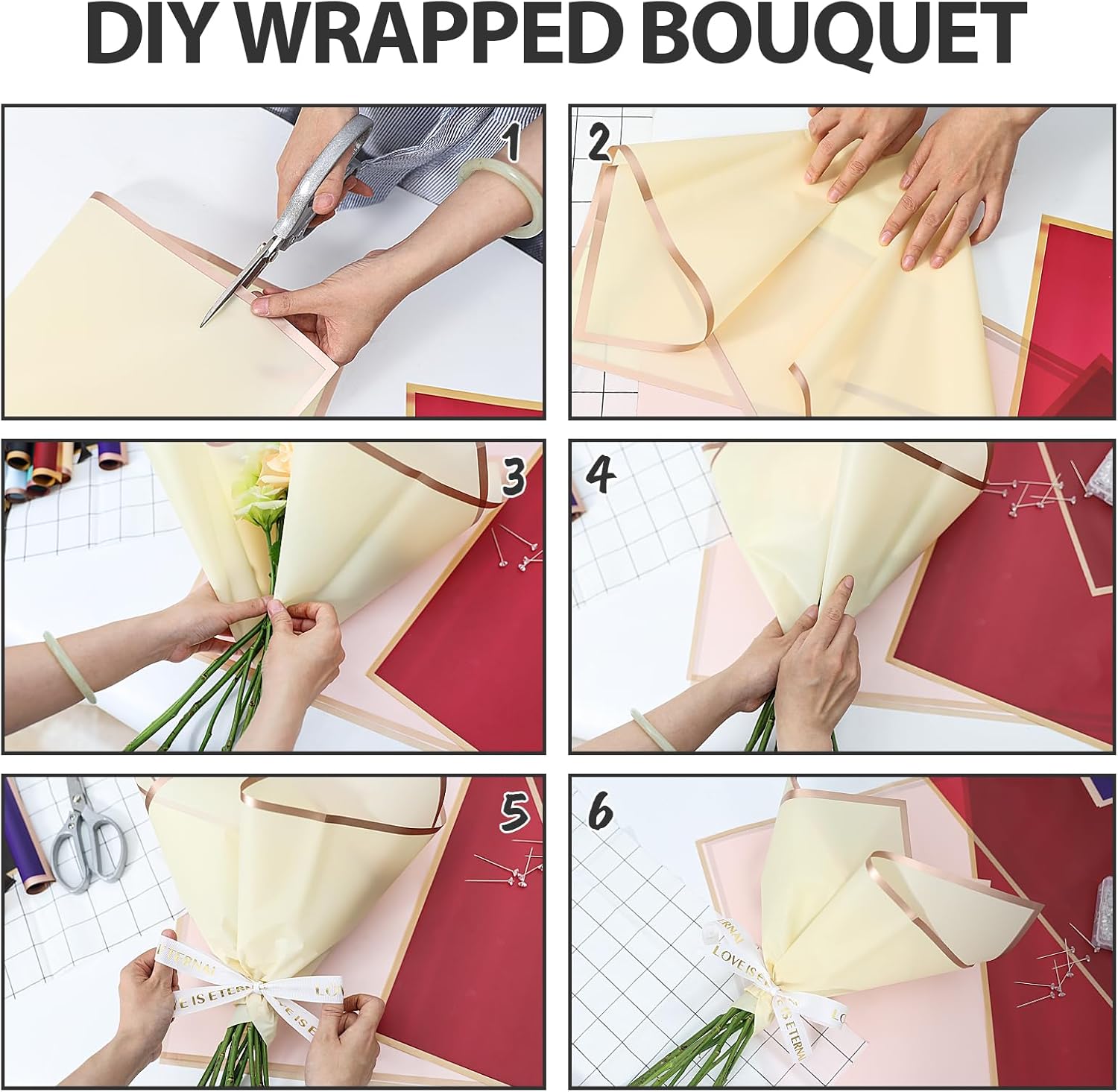 - 【Proper Size to Use】Each floral paper is about 58 x 58 cm/ 22.8 x 22.8 inches, ideal for one bouquet, You can also trim it into a suitable size for small flowers. Light in weight and available to fold, convenient for you to pack and store when no need. Each roll of ribbon is about 32 m in length, and you can trim it into different lengths you need.