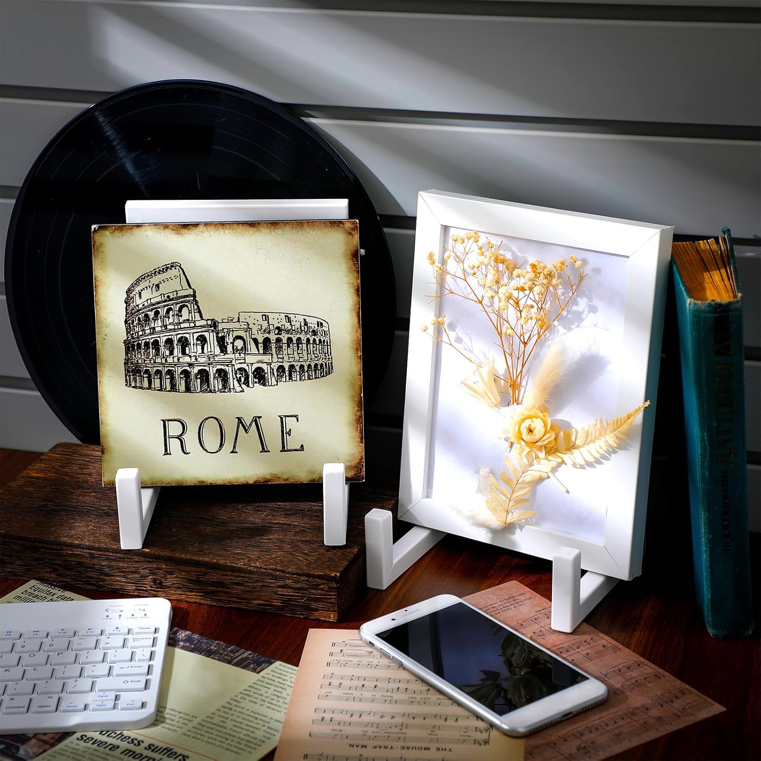 - Industrial Style: as you can see in the pictures, our picture frame holder stand comes in white color, presenting a modern and industrial visual effect; Meanwhile, they adopt geometric lines and shapes, smooth and simple, adding a sense of aesthetic beauty to your tabletops and shelves