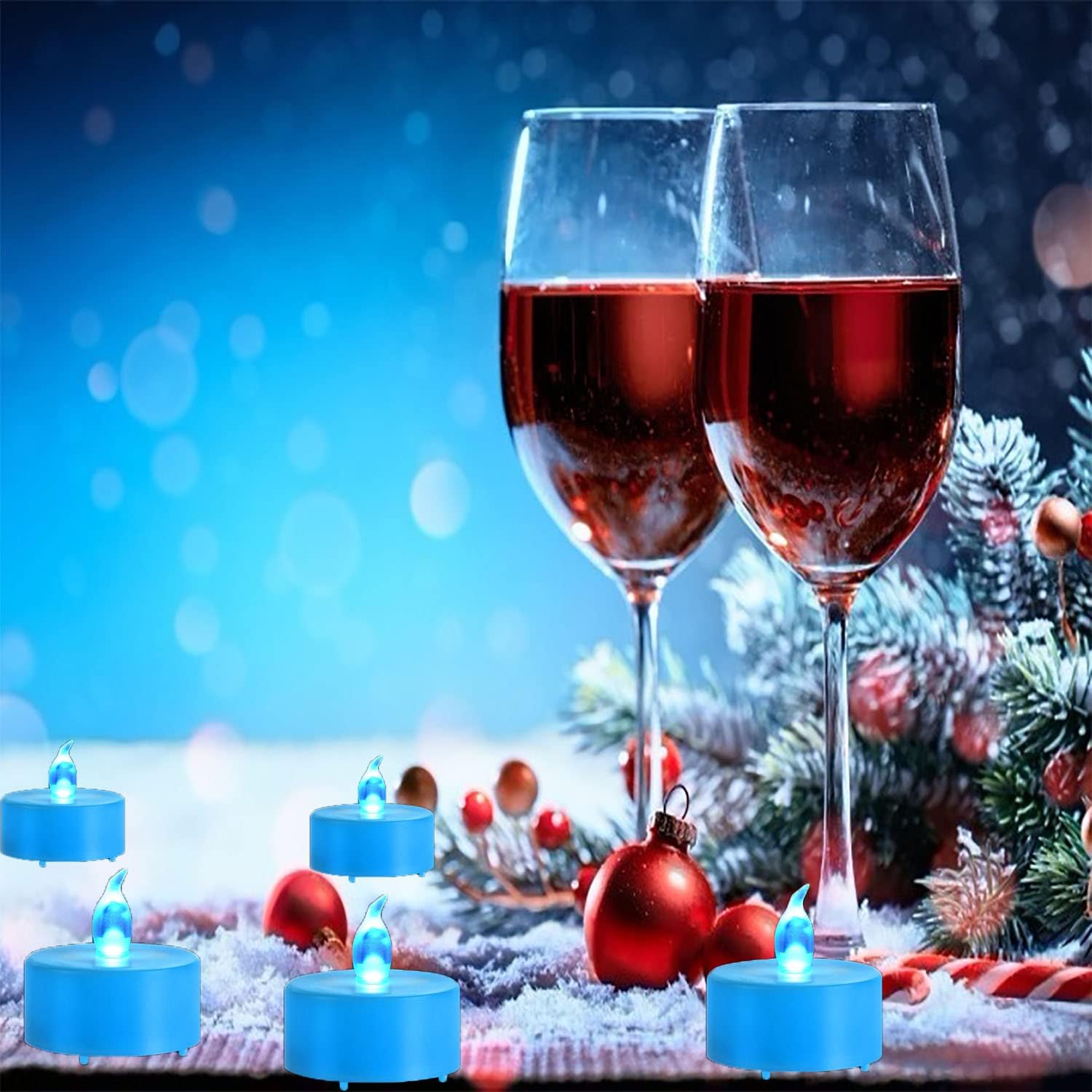 - ✔CREATE AMBIENCE. The Blue flameless LED tea light candles flicker and provide the effect of an actual candle, perfect for decorating weddings, parties, gardens, patios, decks, restaurants, lanterns, kids projects, centerpieces etc