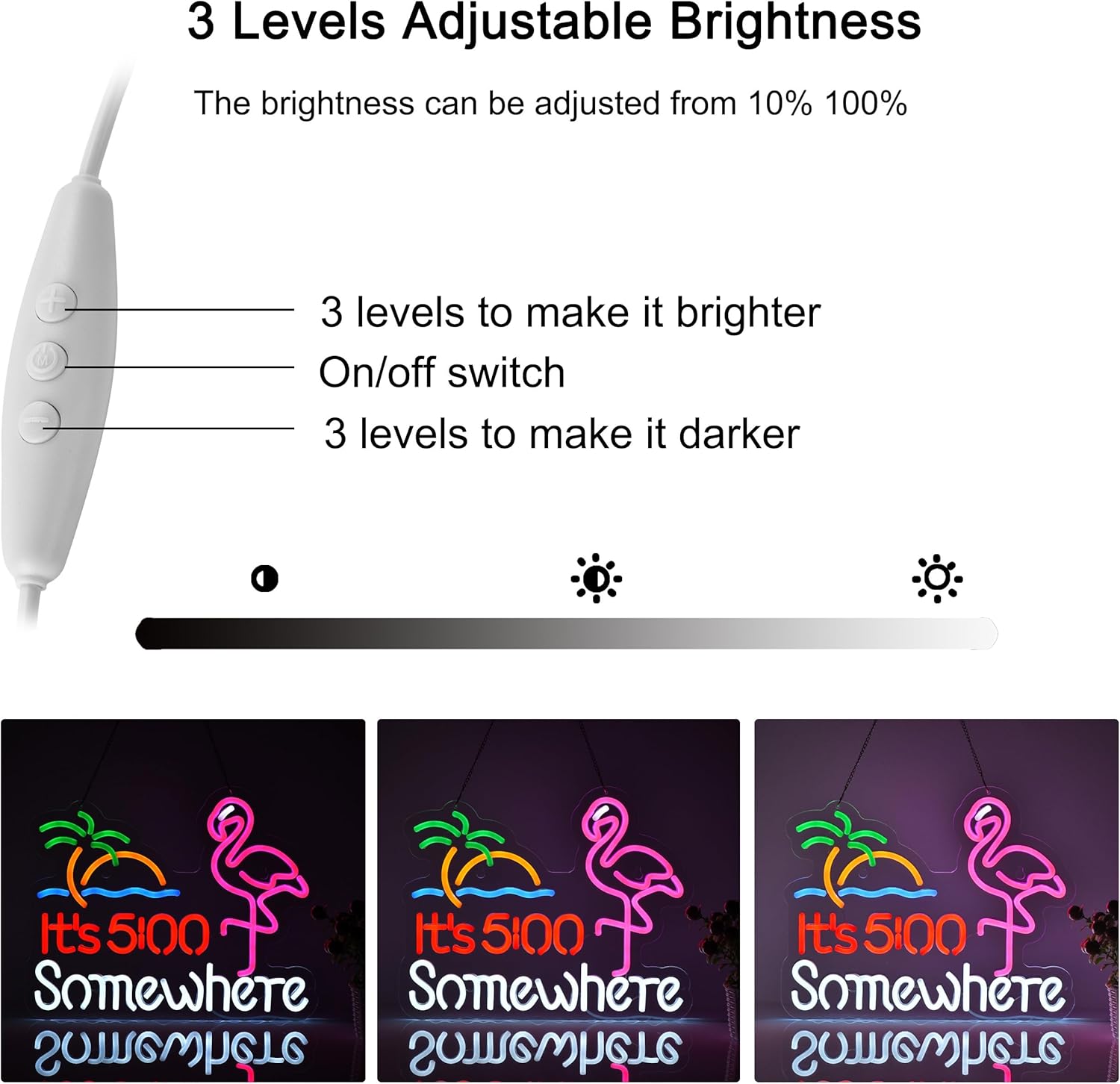 Flamingo Its 5 00 O'clock Somewhere Neon Sign for Wall Décor Dimmable LED Bar Beer Neon Light USB Powered Neon Art Signs