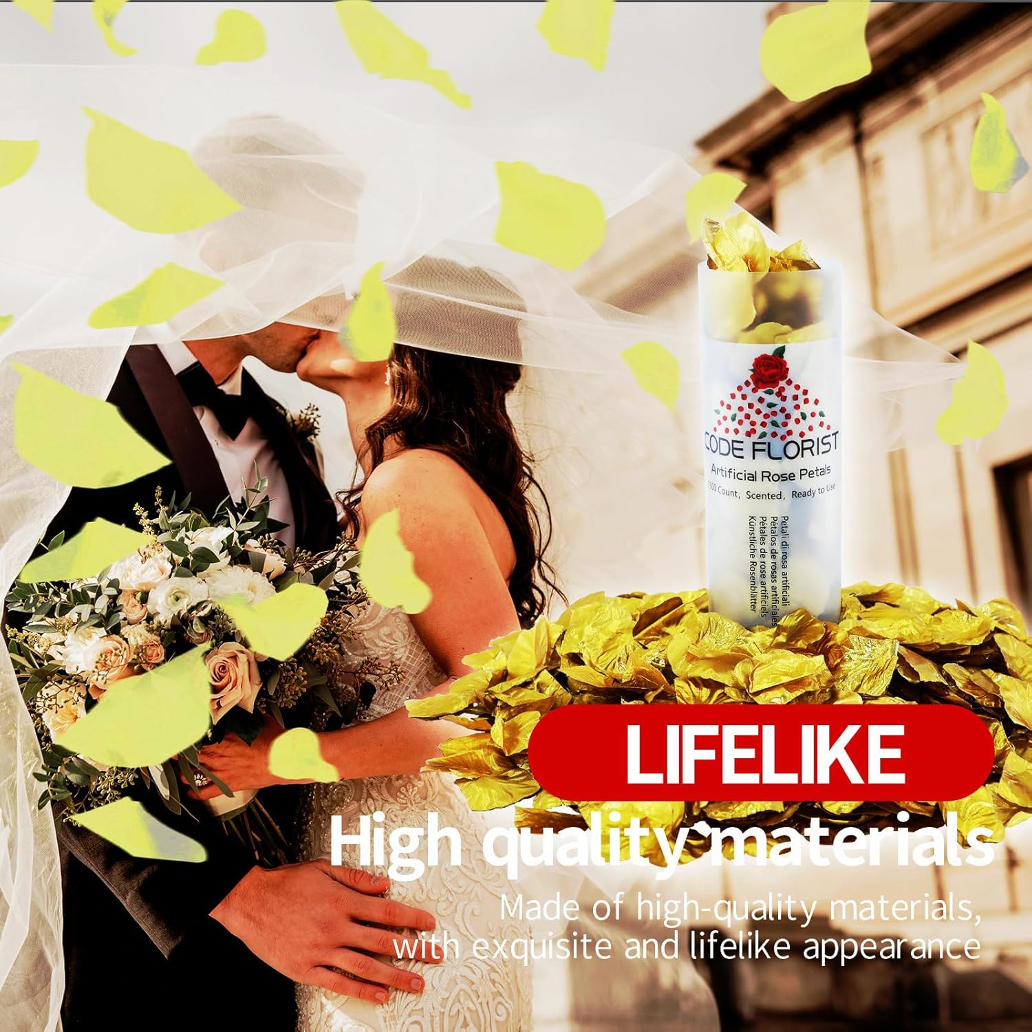 CODE FLORIST 1100 PCS Silk Rose Petals for Valentine's Day,Fake Rose Petals for Romantic Night,Wedding,Proposal Anniversary Flower Decorations(Separated,Scented,Gold)