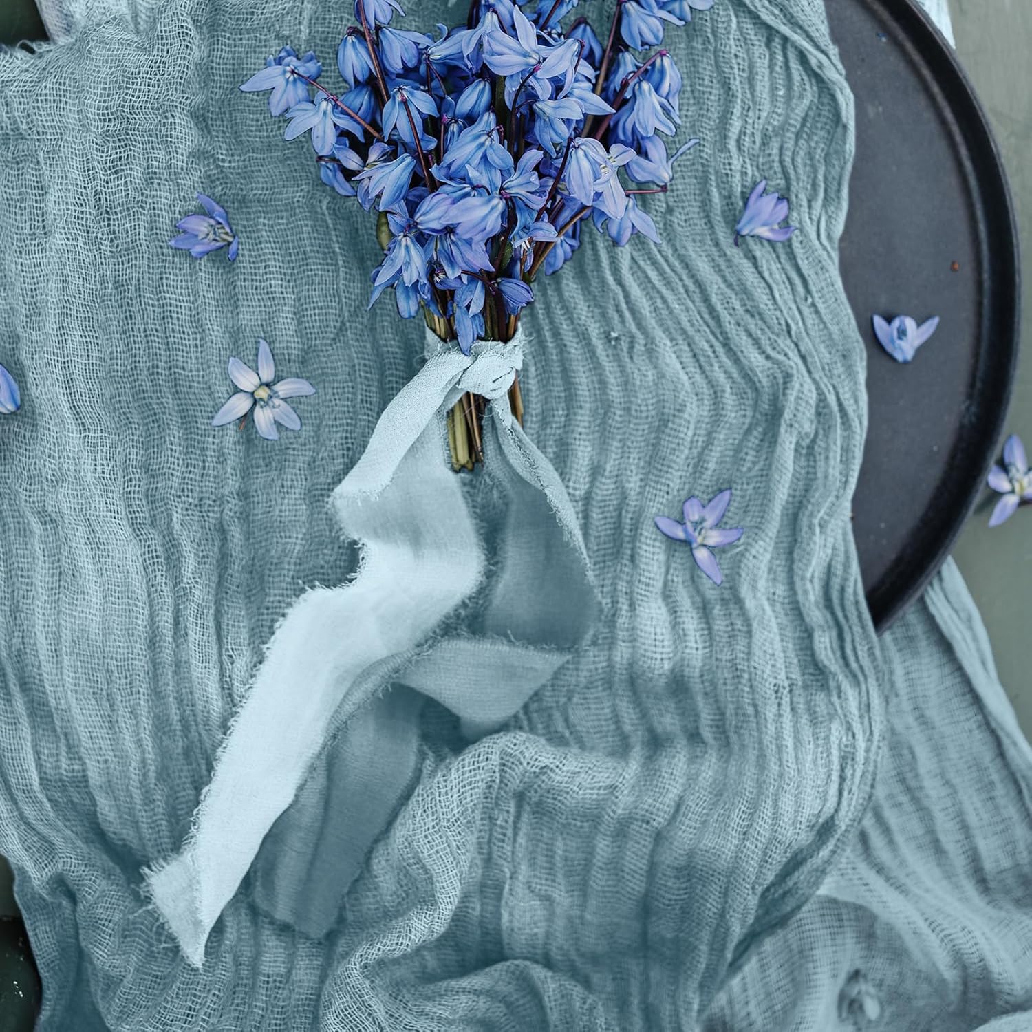 12 Pack Cheesecloth Table Runner, Runner Gauze Boho Wedding Decor Romantic Table Runner for Wedding Birthday Party(35" x 118")(Grayblue)