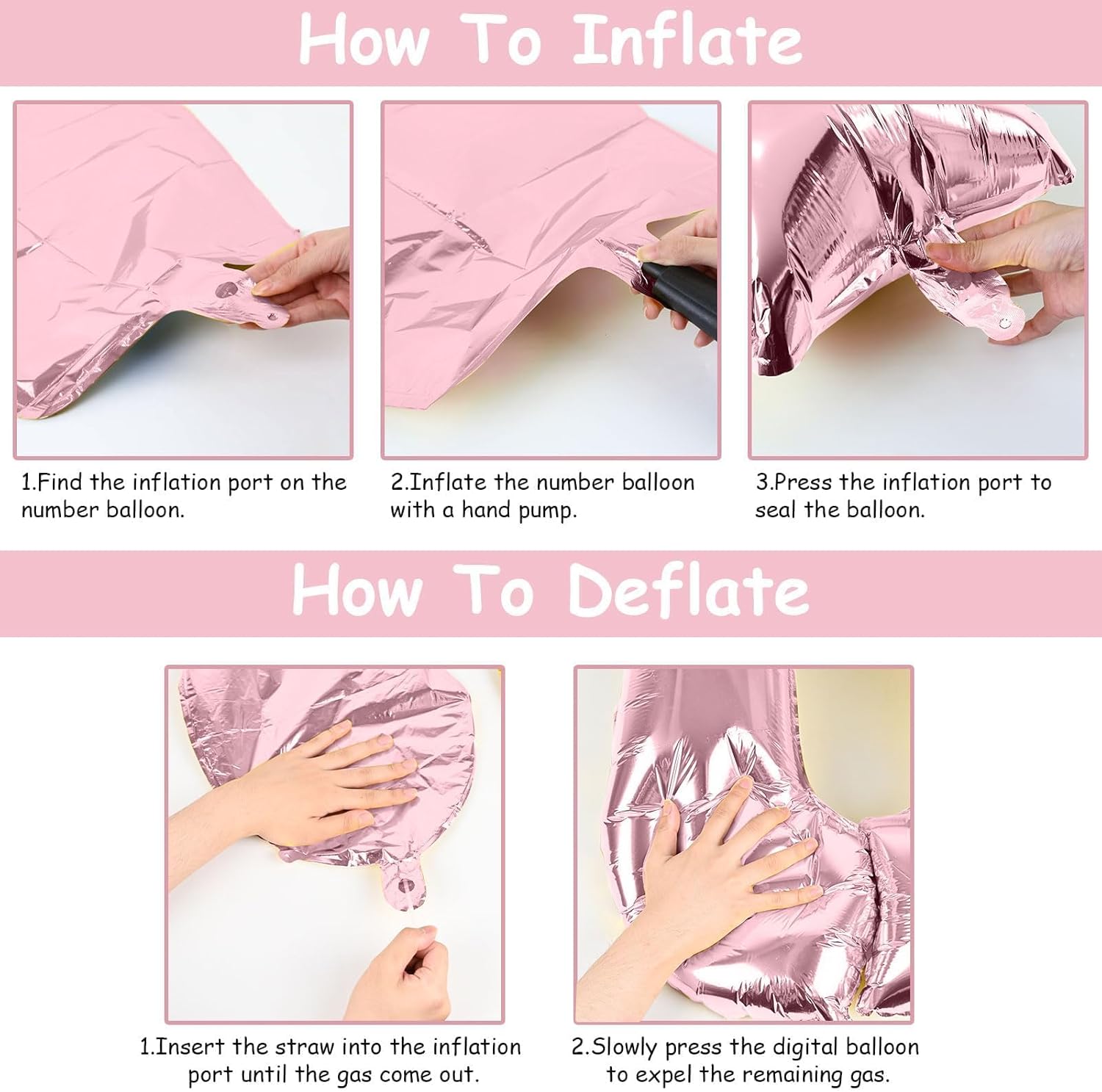 - š Repeated Use š - The pastel pink number 9 balloons set contains a straw that can be used to deflate the foil balloon, simply insert the straw into the valve and press gently until the gas is completely expelled. After use, it can be folded and stored for reuse.