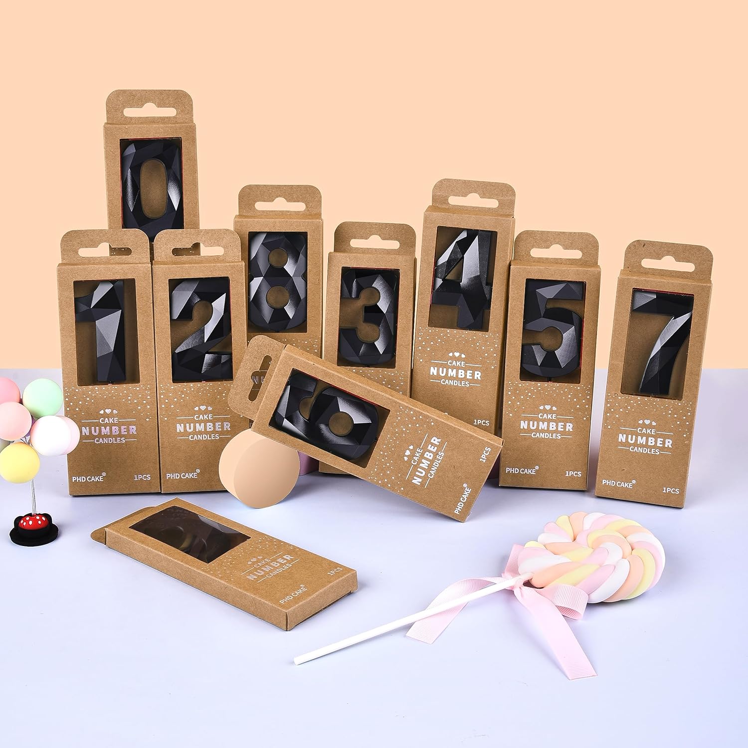 PHD CAKE 2.76 Inch Crystal Black 2 Number Birthday Candles, Black Number Candles, Cake Number Candles, Party Celebration