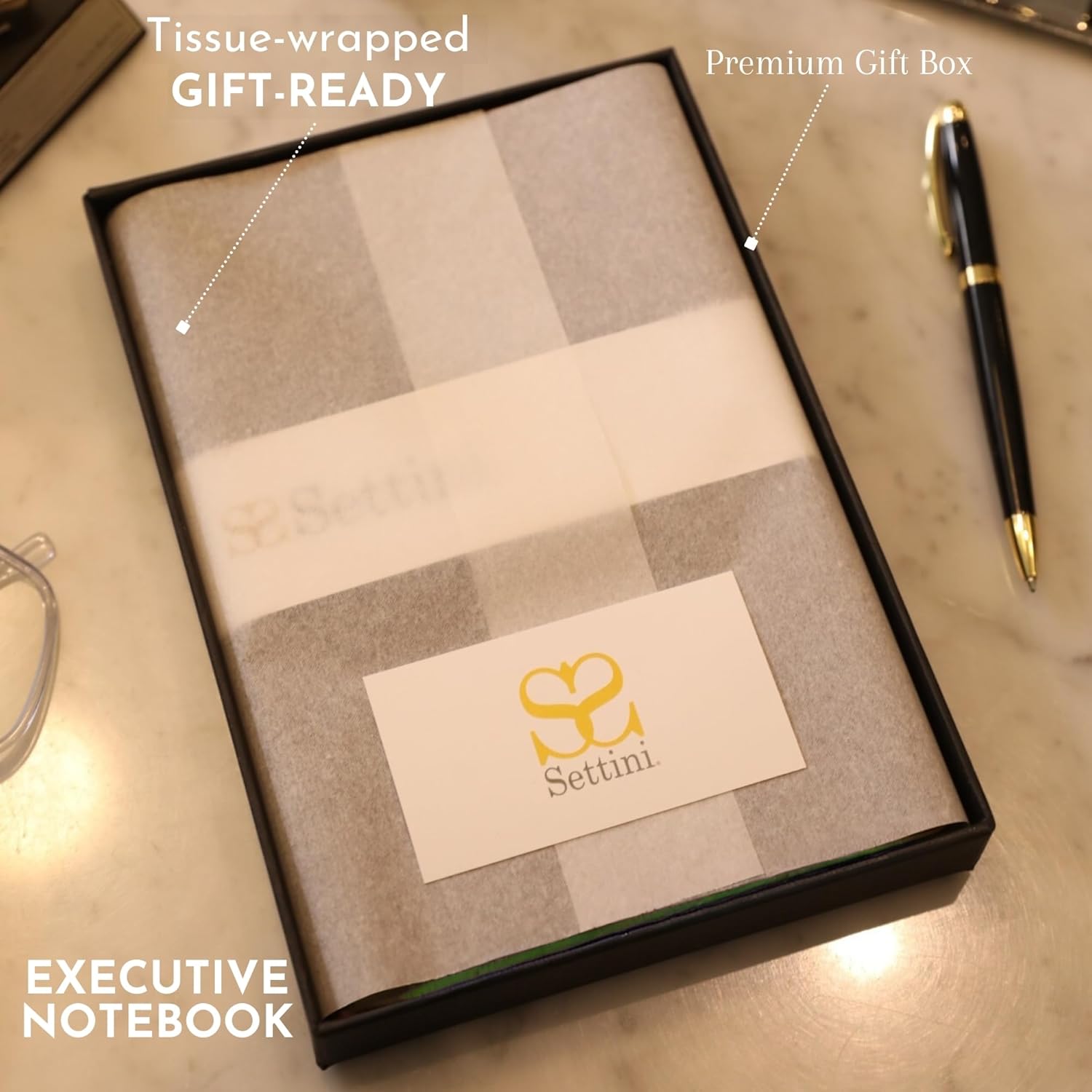 SETTINI Journal Notebook for Writing, Vegan Leather Hardcover Notebook - Pen loop, Back Pockets & Lay-Flat design, 120 GSM A5 College ruled Bleed free Paper, Gift Set for Men and Women, Emerald Green - Birthday Gift