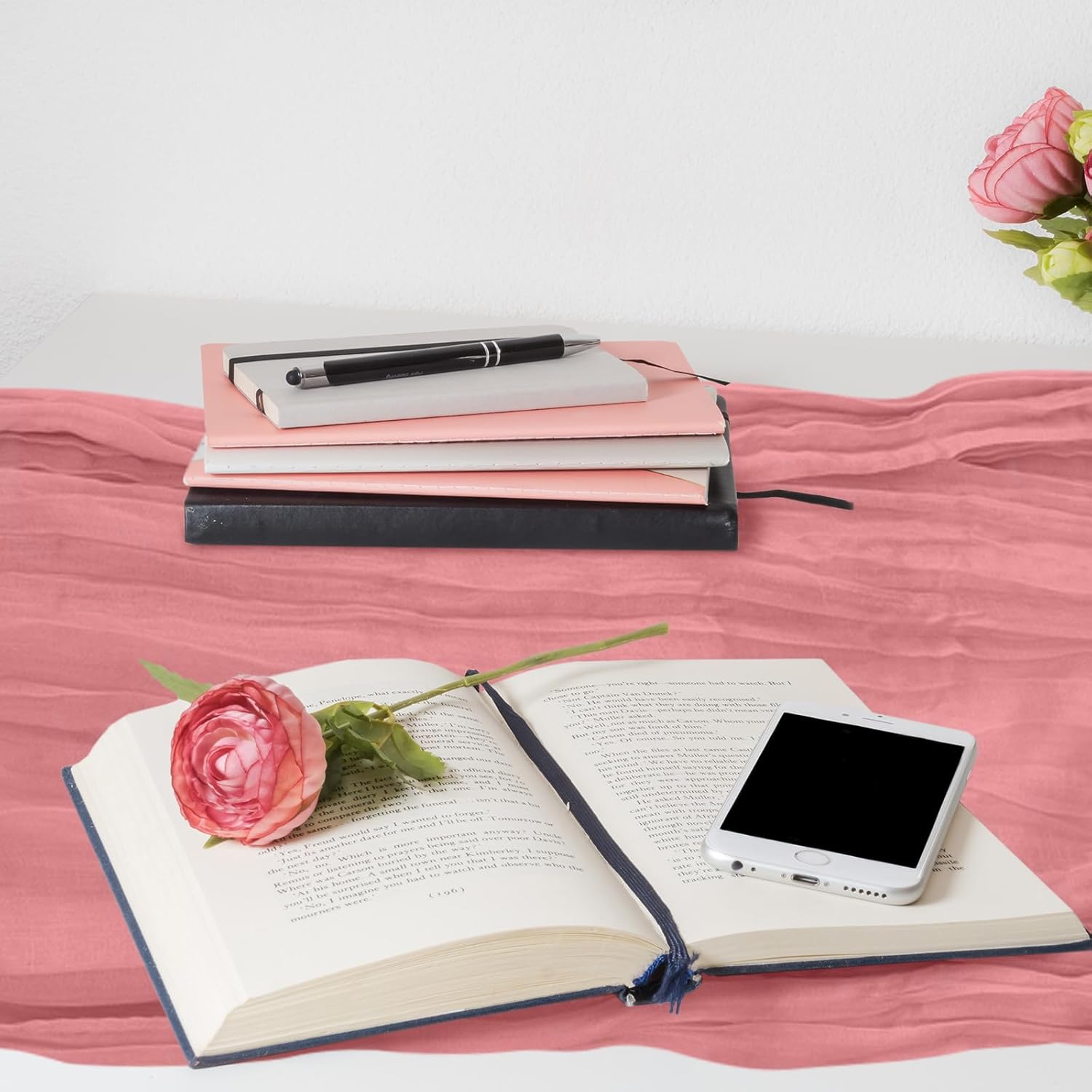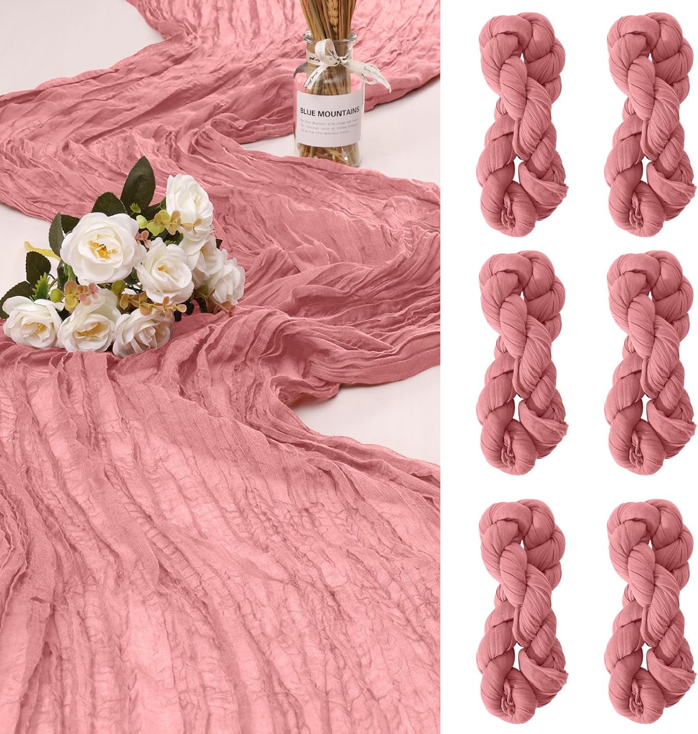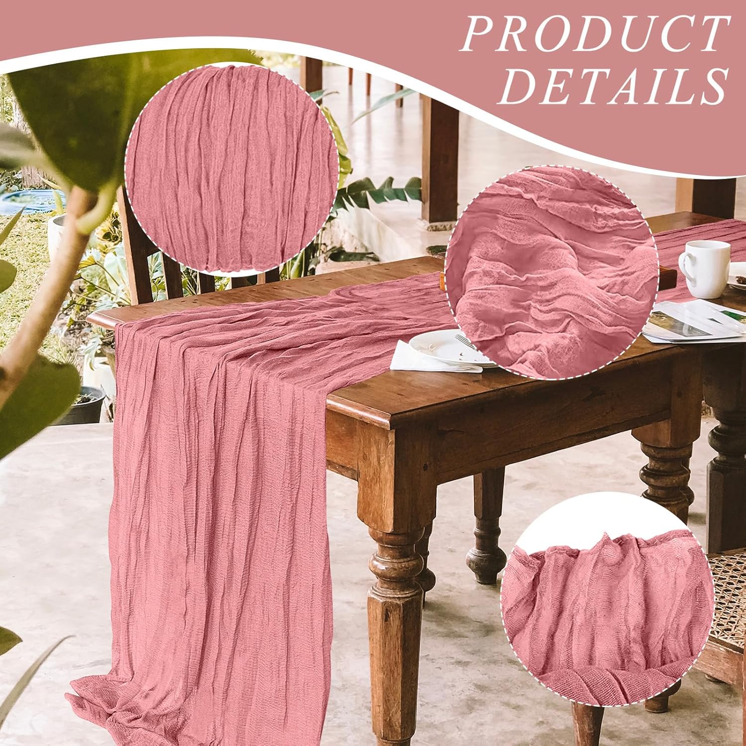 - 【Soft Material】: Made of high quality polyester, soft to touch, comfortable and durable. Wrinkled design cheese cloth farbic, delicate edges and stitches, adopts seamless technique makes this sheer table runner more graceful than traditional fabrics. Our cheesecloth wedding table runners are durable, the colour stays for a long time, does not fade and can be reused.