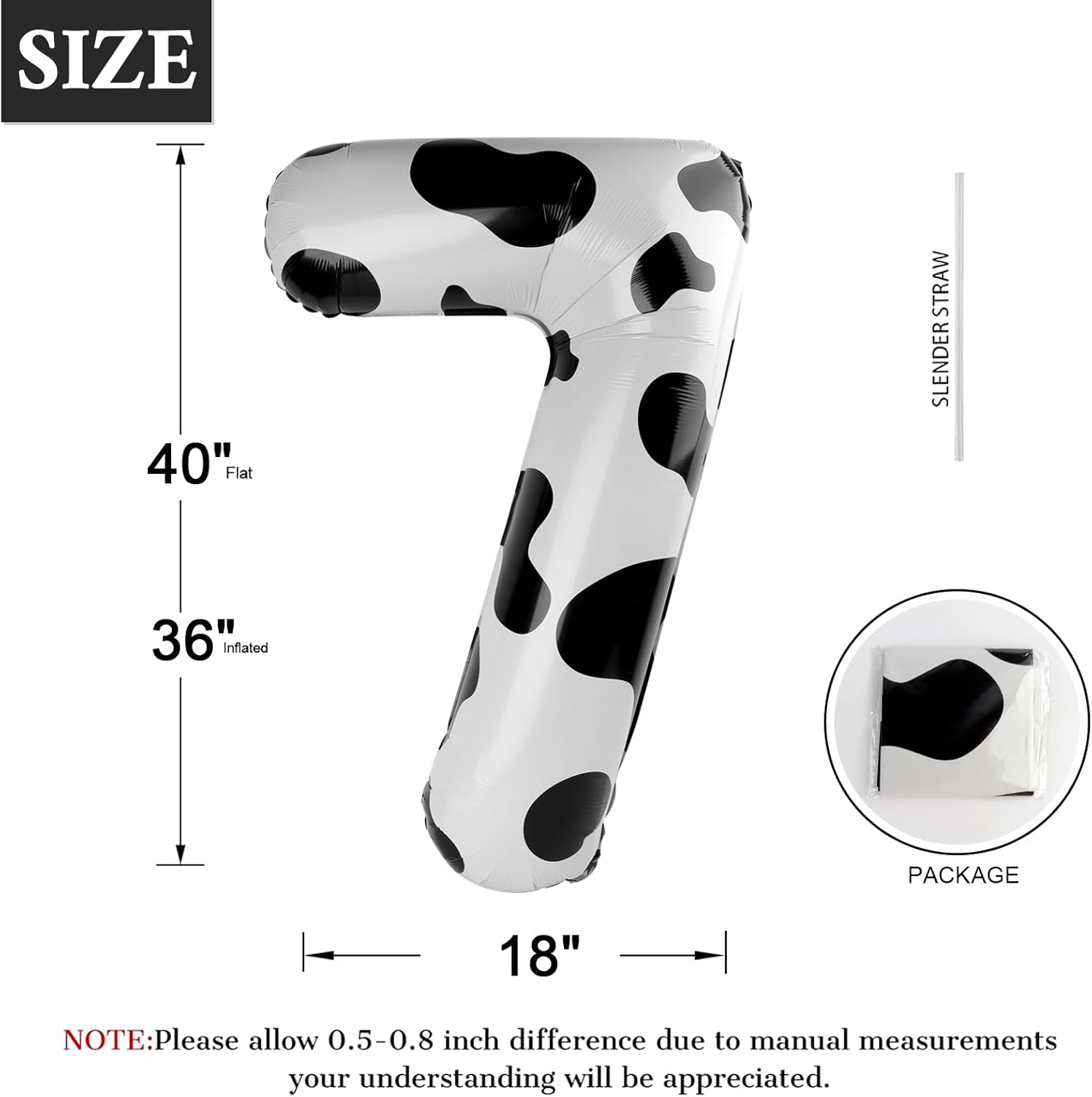 Cow Print Number Balloon Birthday Decorations, 40 inch Number balloon 0-9(Zero-Nine), Cow Balloon for Farm Birthday Party Supplies, Cow Themed birthday party Decorations (Number 7)