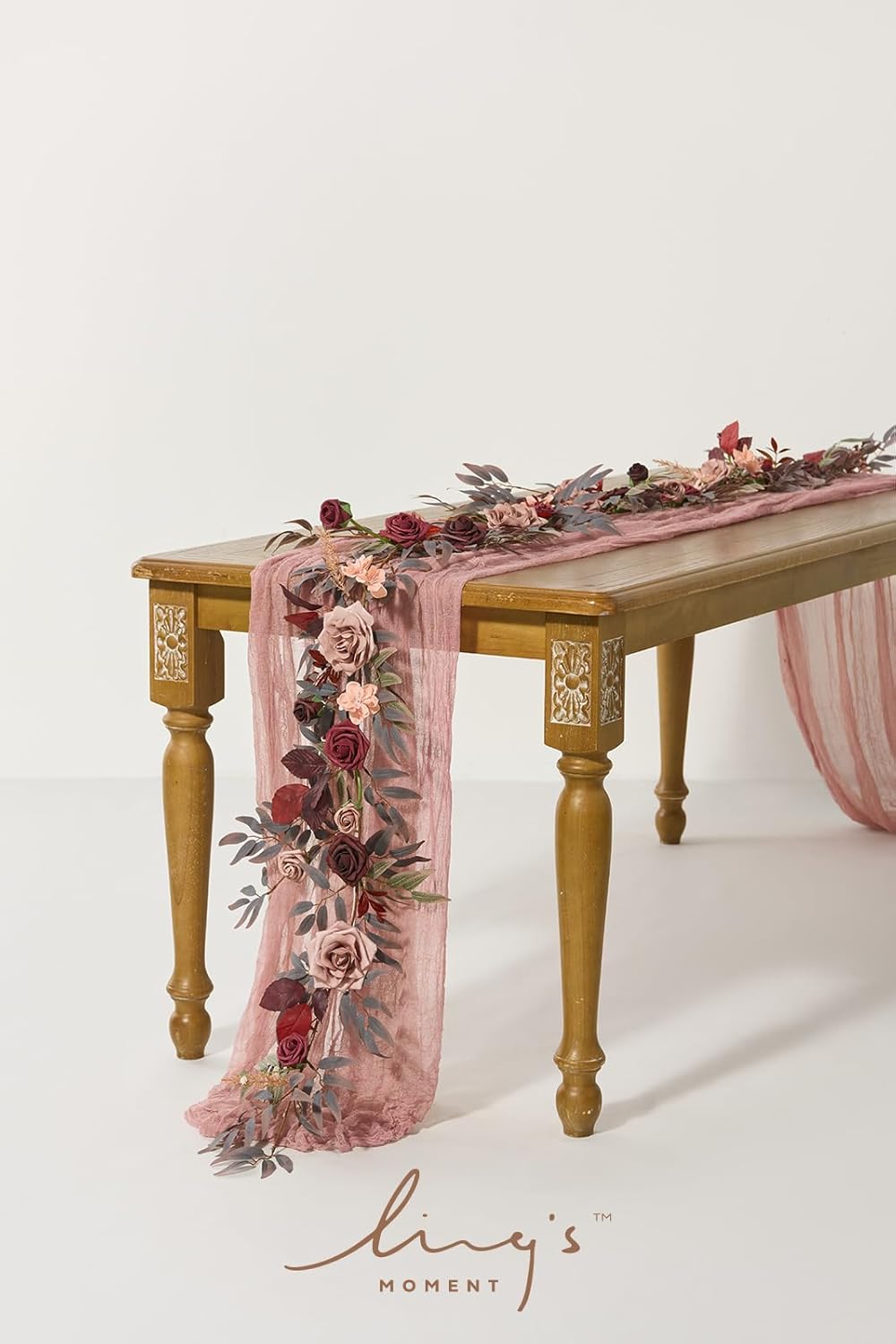 Ling's moment 5FT Burgundy Artificial Flower Garland Maroon Rose Floral Garland Arch Flowers Vine for Wedding Party Backdrop Decor Home Mantel Table Centerpieces Decorations Dusty Rose