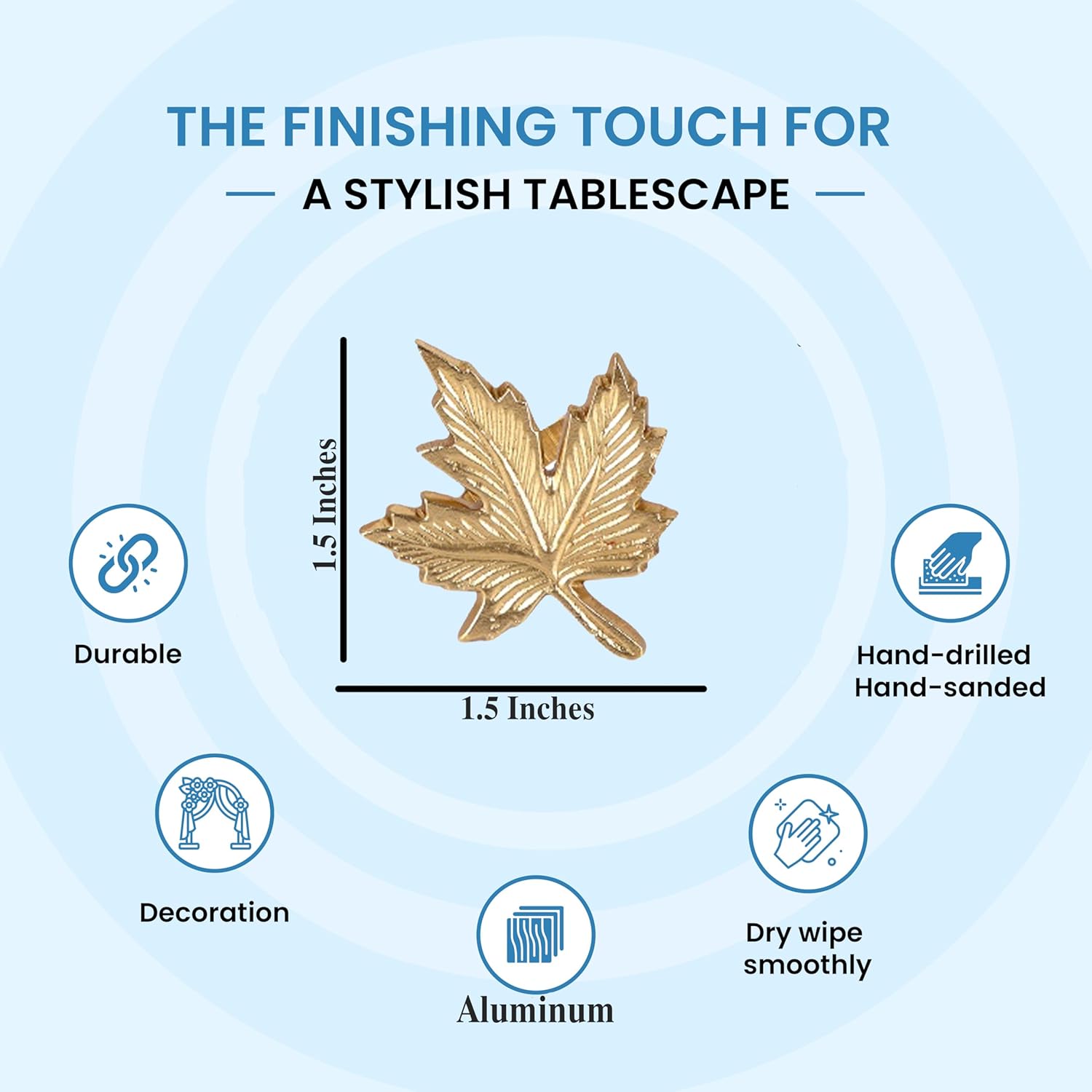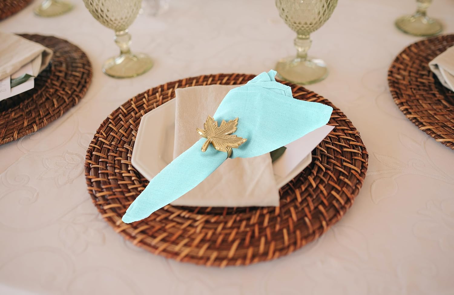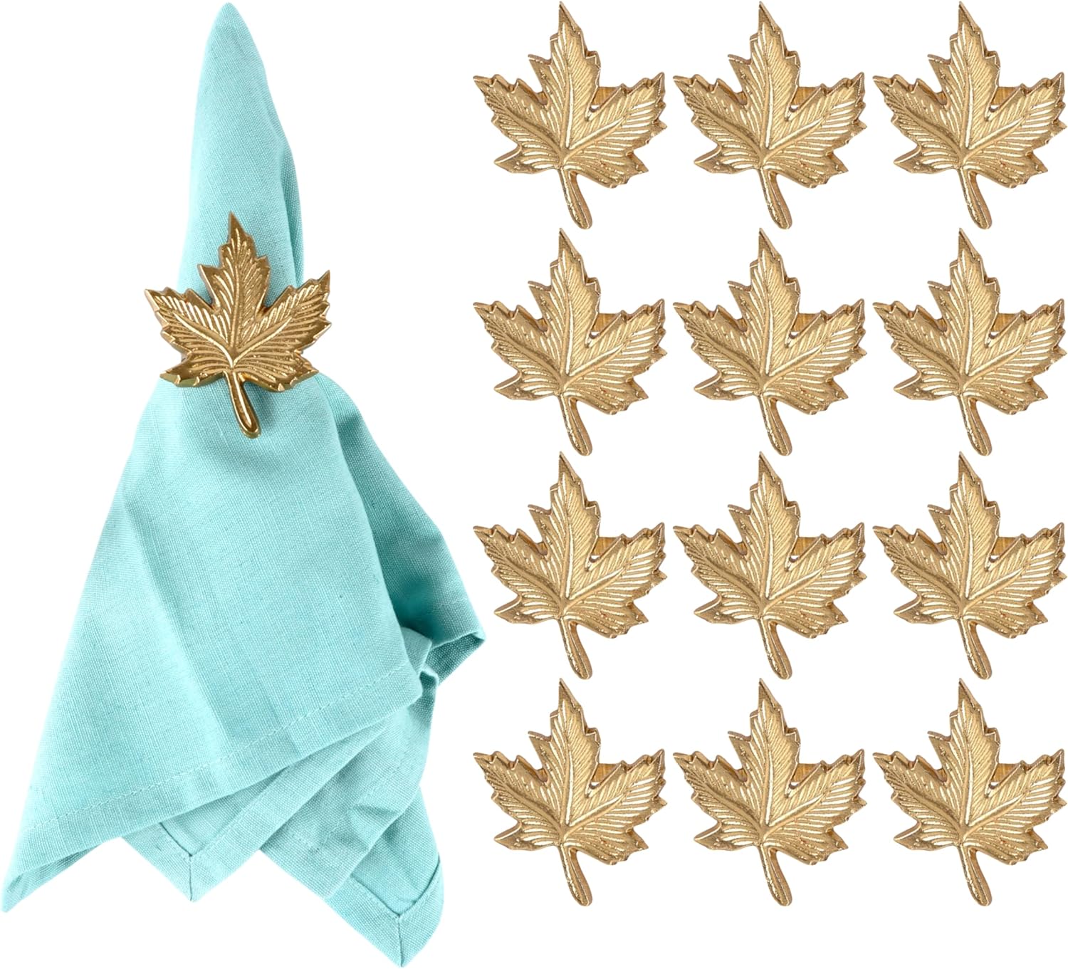 - β SET OF 12 -IDEAL SIZE FOR TABLE SETTINGS & GIFTING: Each gold maple leaf napkin ring measures 1.75 x 2.5 x 3 Inches, designed to fit most standard cloth or paper napkins. Comes in a complete set of 12, ideal for hosting full dinner tables, holiday parties, or autumn gifting.