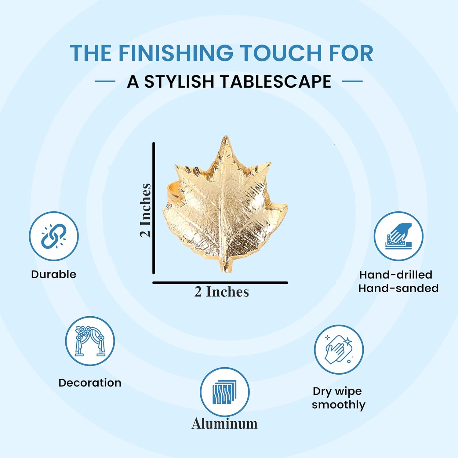 - ✅ PERFECT SIZE - SET OF 12: Each gold maple leaf napkin ring measures 2 x 2 x 2 inches, ideal for neatly holding cloth or paper napkins for gatherings of 12 guests.