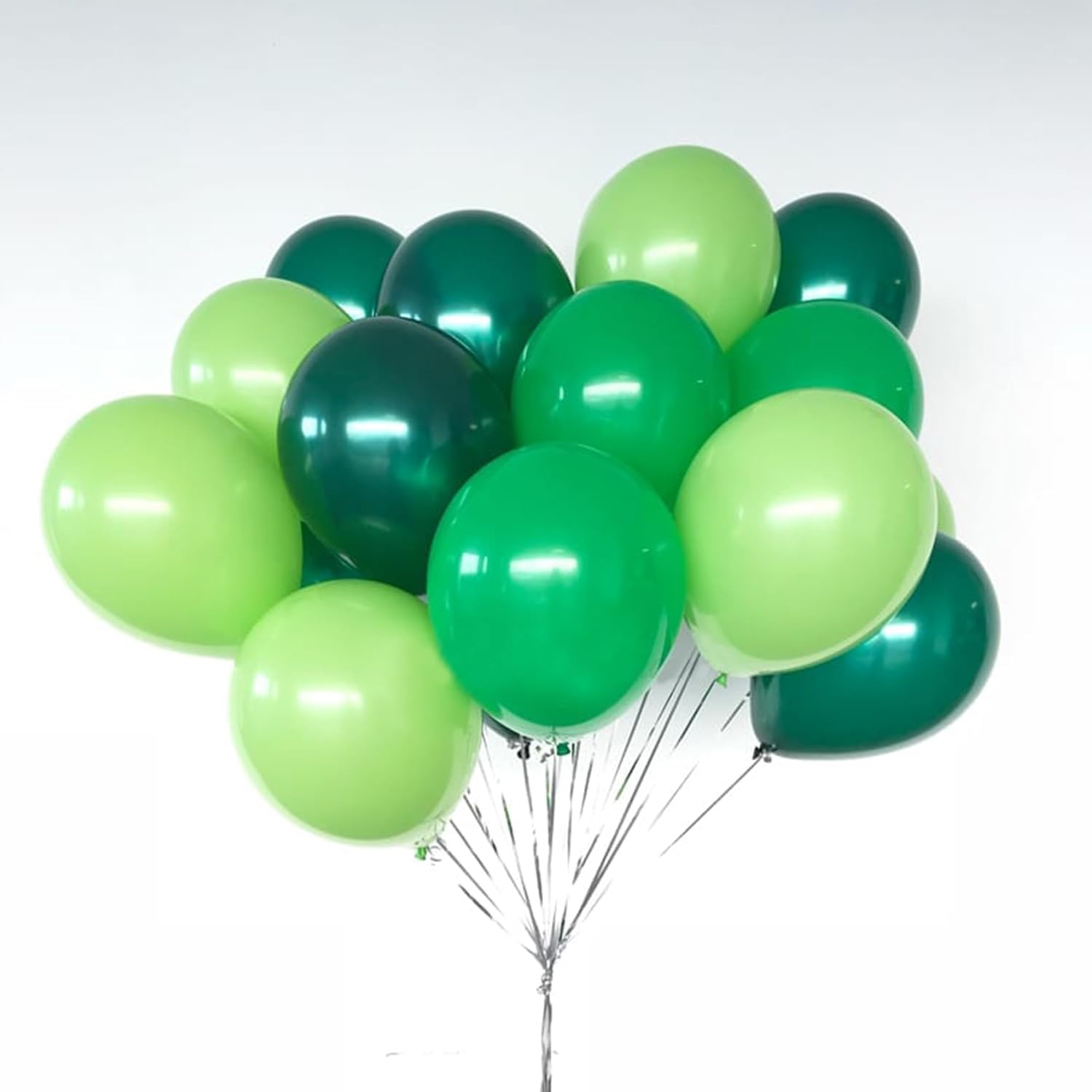 - Different Shades of Green Balloons: 60 balloons and 2 ribbons. All our party balloons are shipped in vacuum packaging to prevent them from being oxidized during transportation.