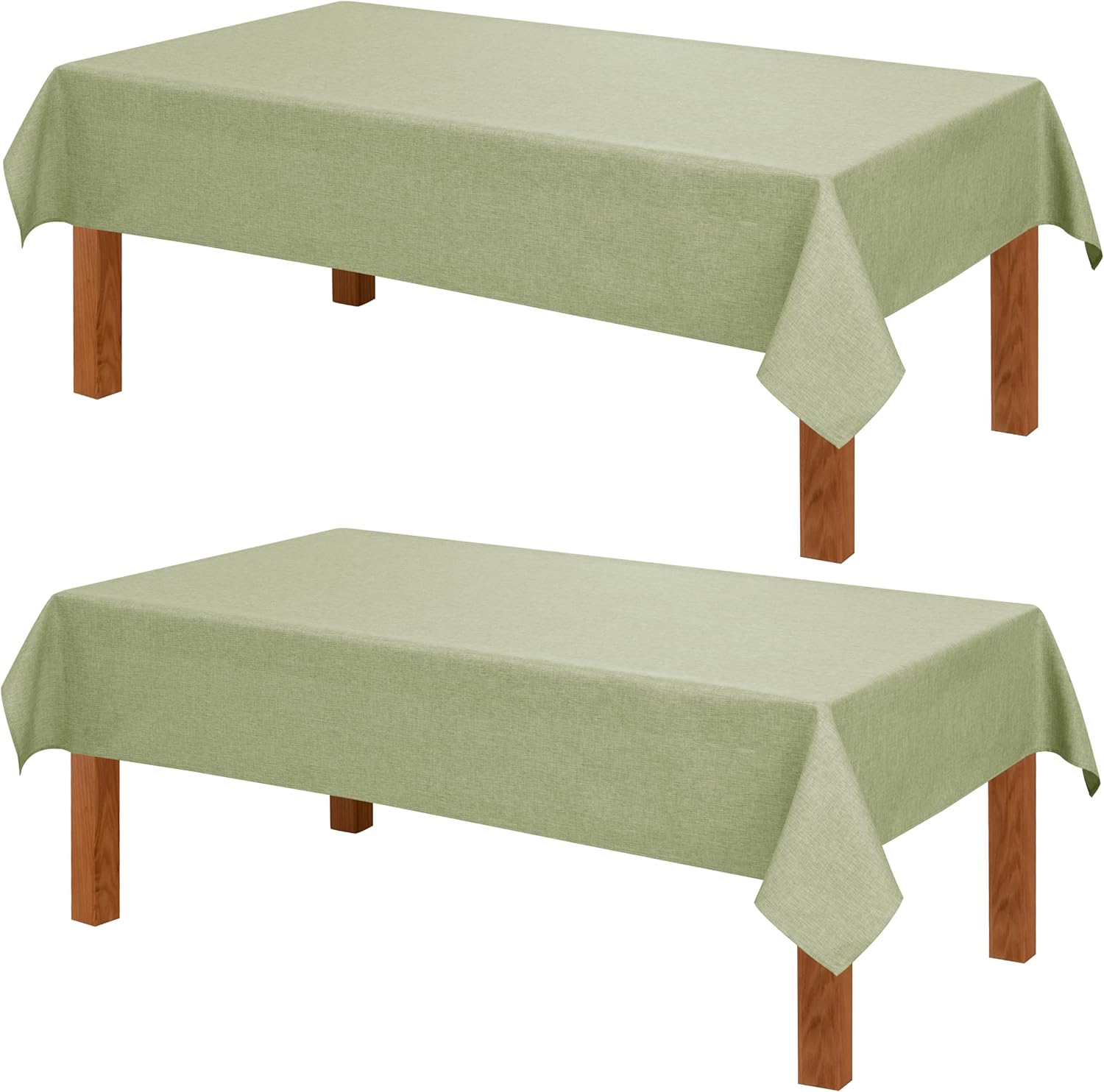 Hiasan 2 Pack Faux Linen Rectangle Tablecloth - Wrinkle and Stain Resistant Washable Table Cloth for Kitchen Dining Room Holiday Table Cover for Party Dinner, Green, 60 x 120 Inch